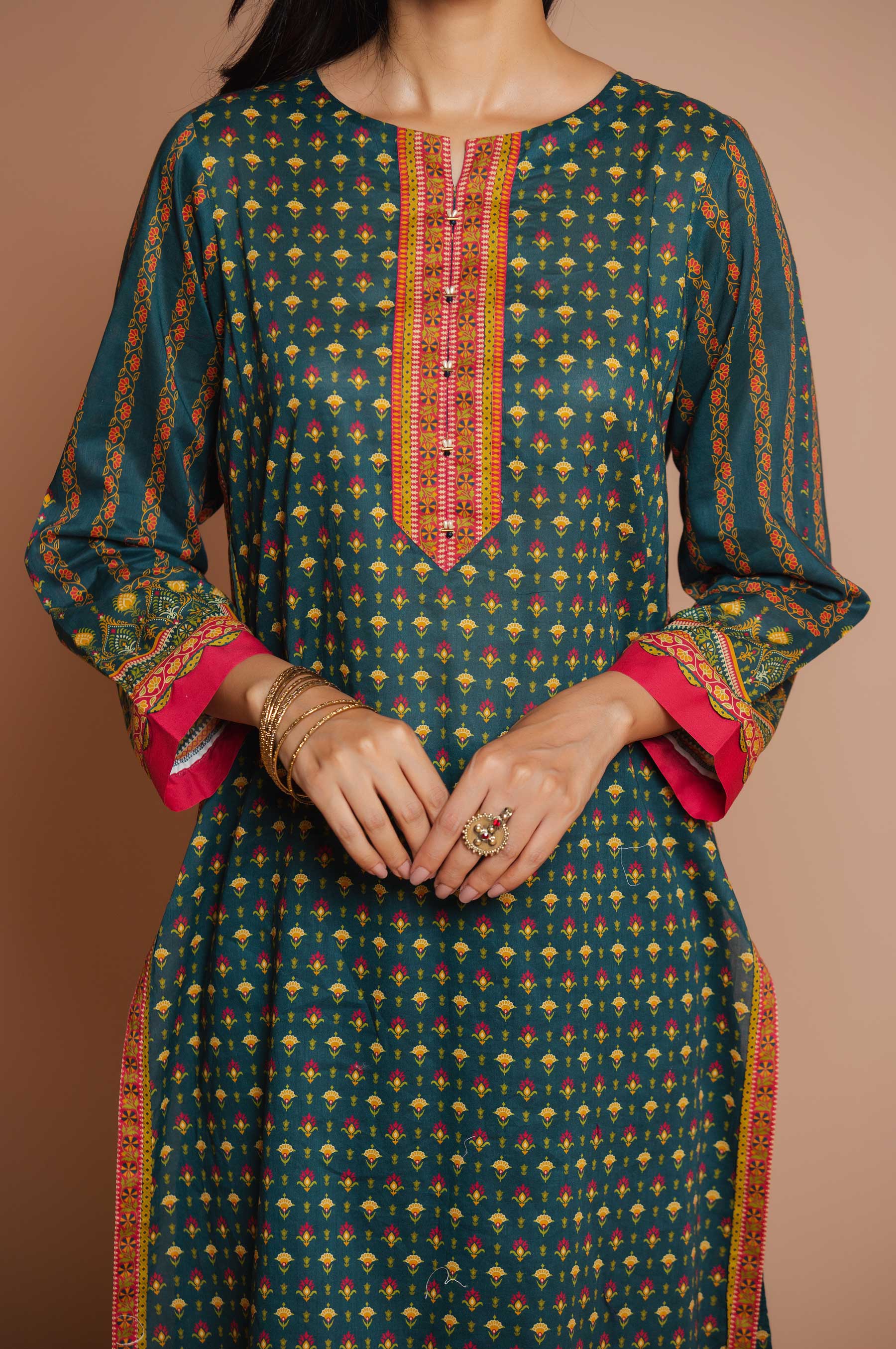 Printed Lawn Shirt, Printed Lawn Dupatta, Pearls & Beads for Embellishment.