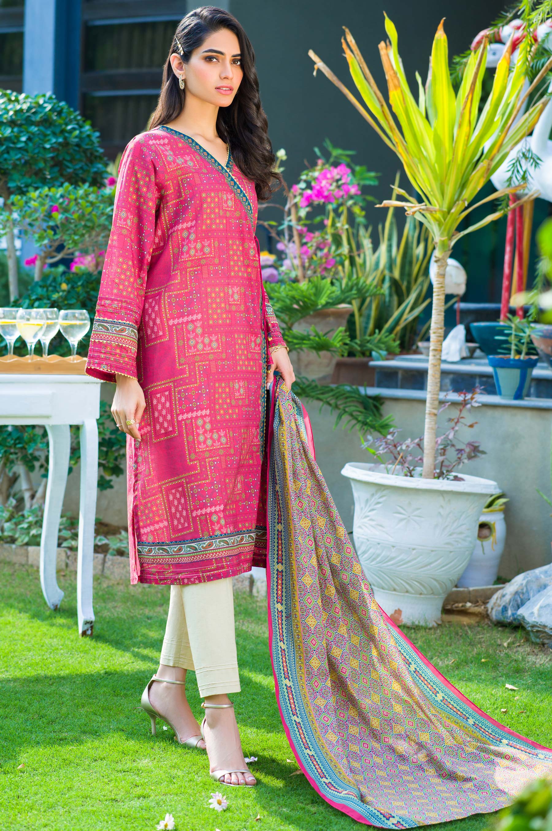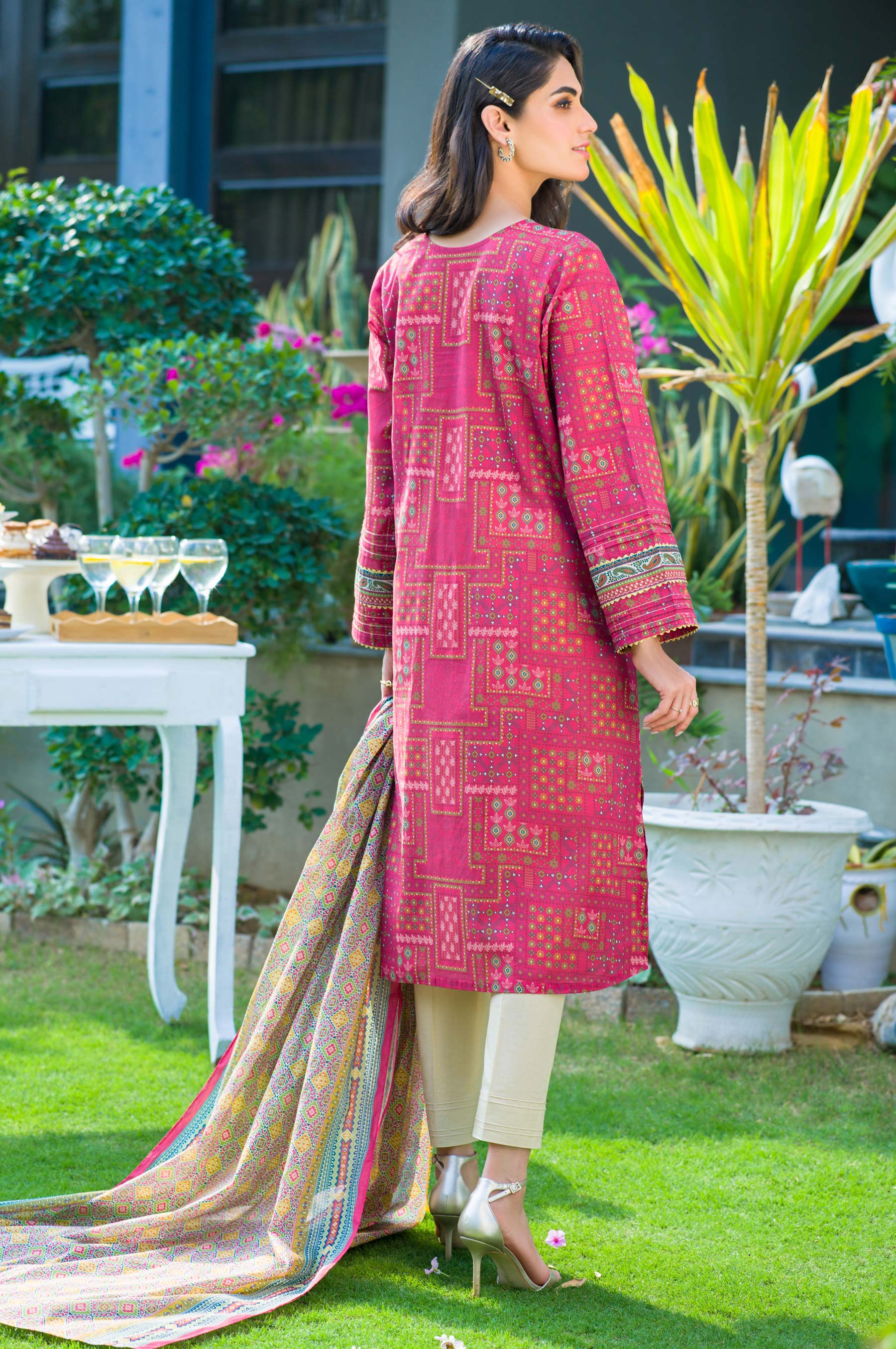 Printed Lawn Shirt, Printed Cotton Net Dupatta,Dori,Laces & Tassel for Embellishment.