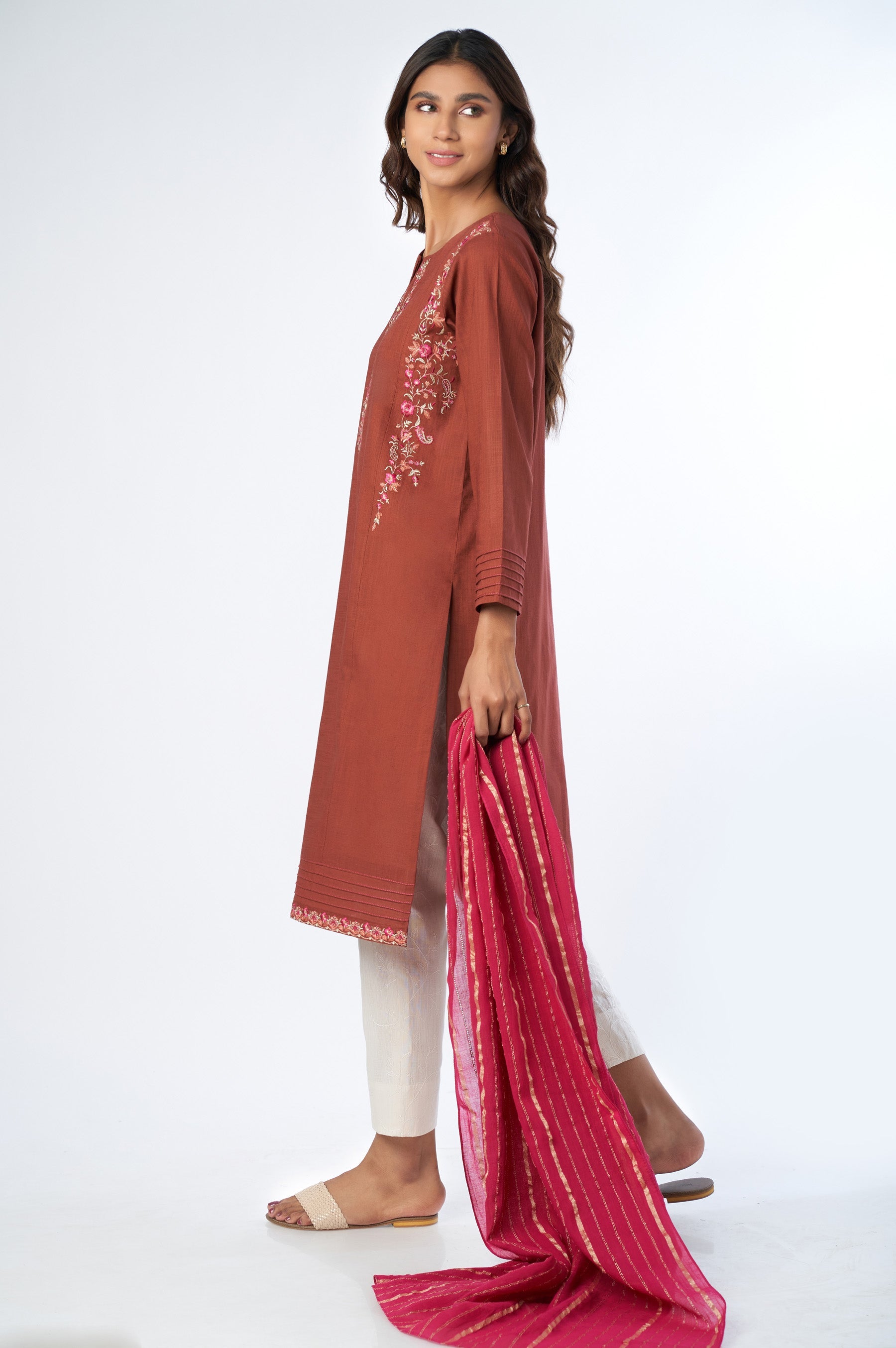 Stitched 2 Piece Cotton Slub shirt & Stipes Jacquard Dupatta