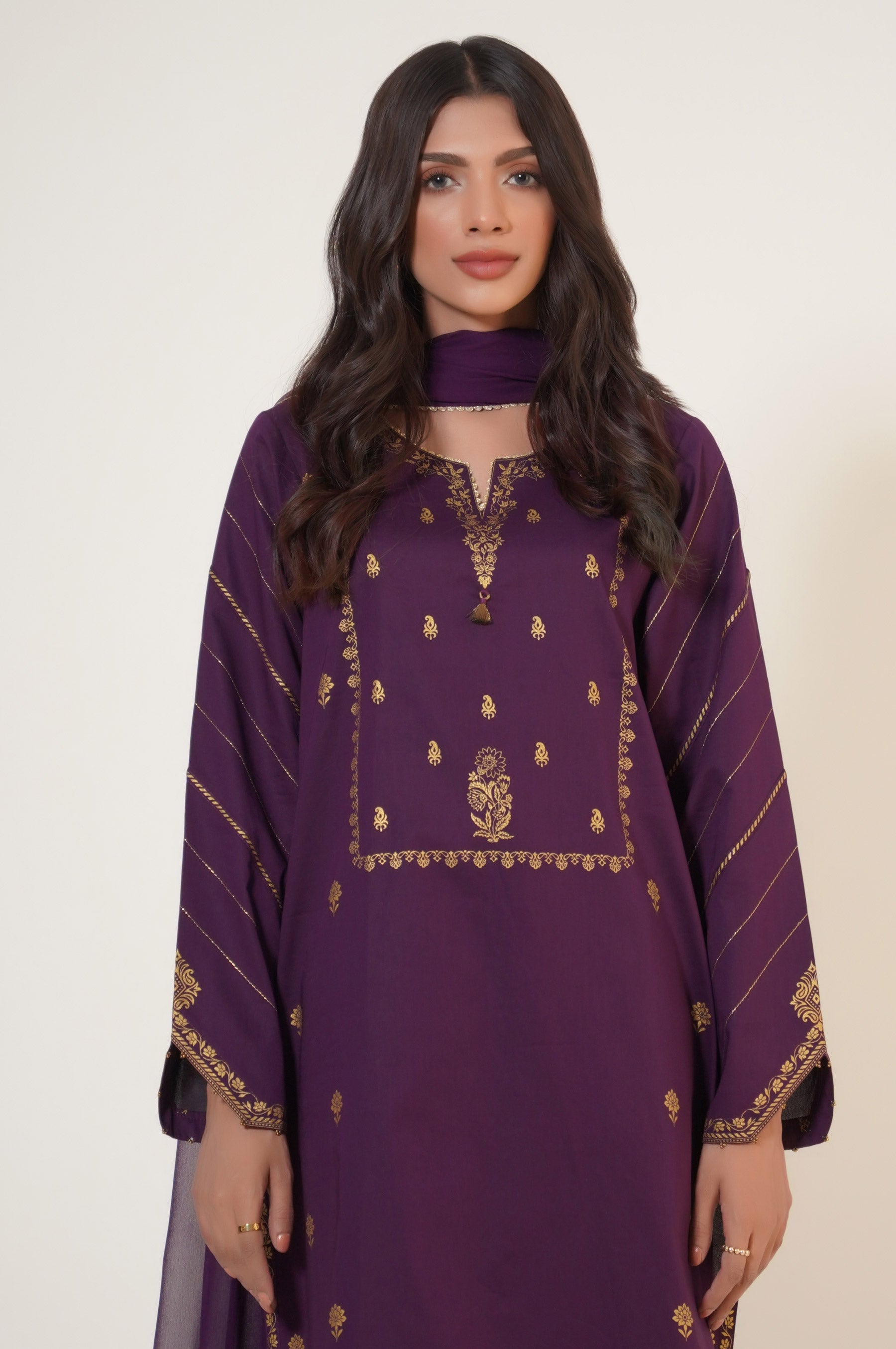 The shirt relishes with detailed and intricate gold paste design creating a complete unique outfit. Paired with embroidered trouser.