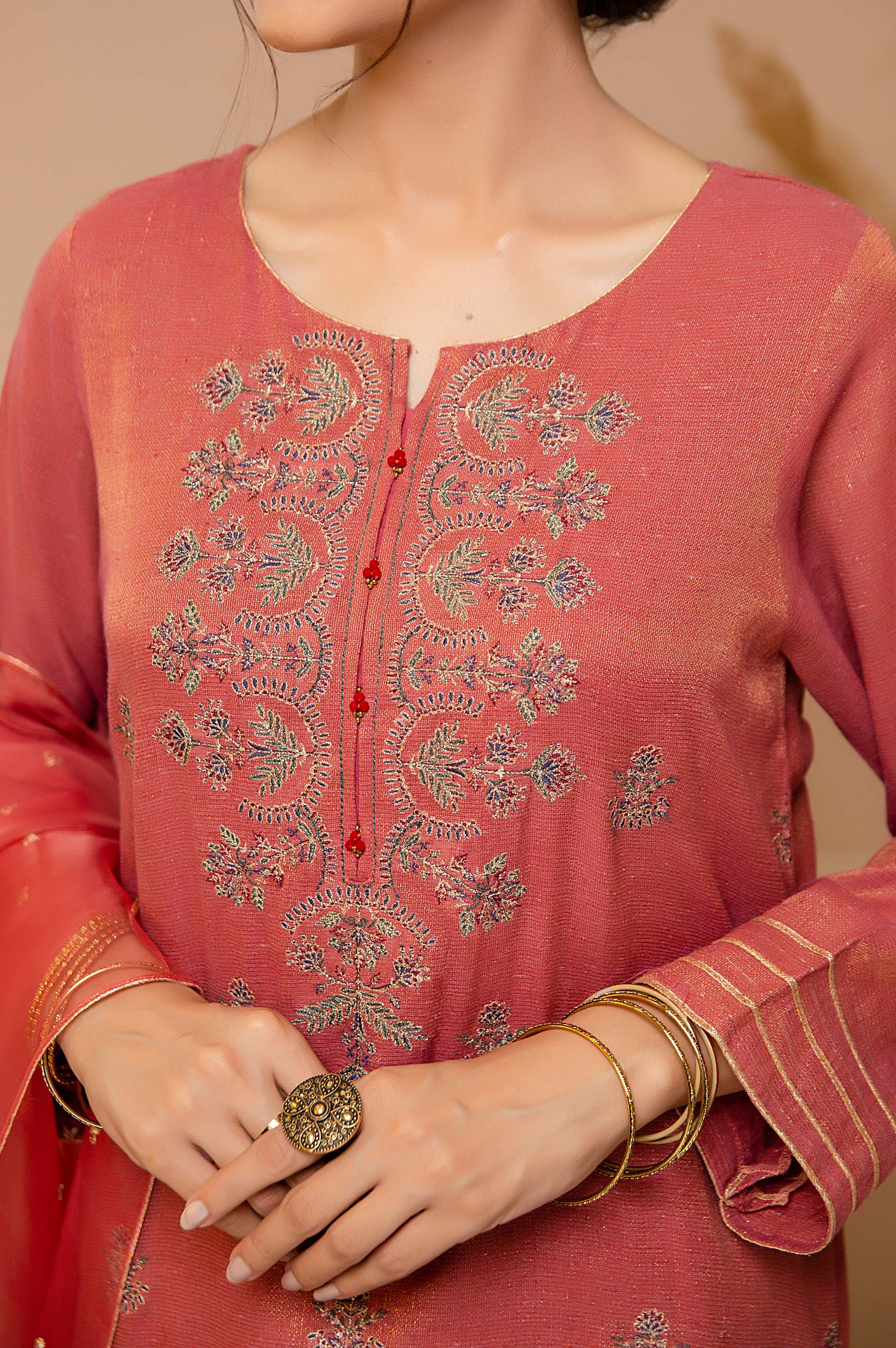 Stitched 2 Piece Zari Khaddi Net Embroidered Suit