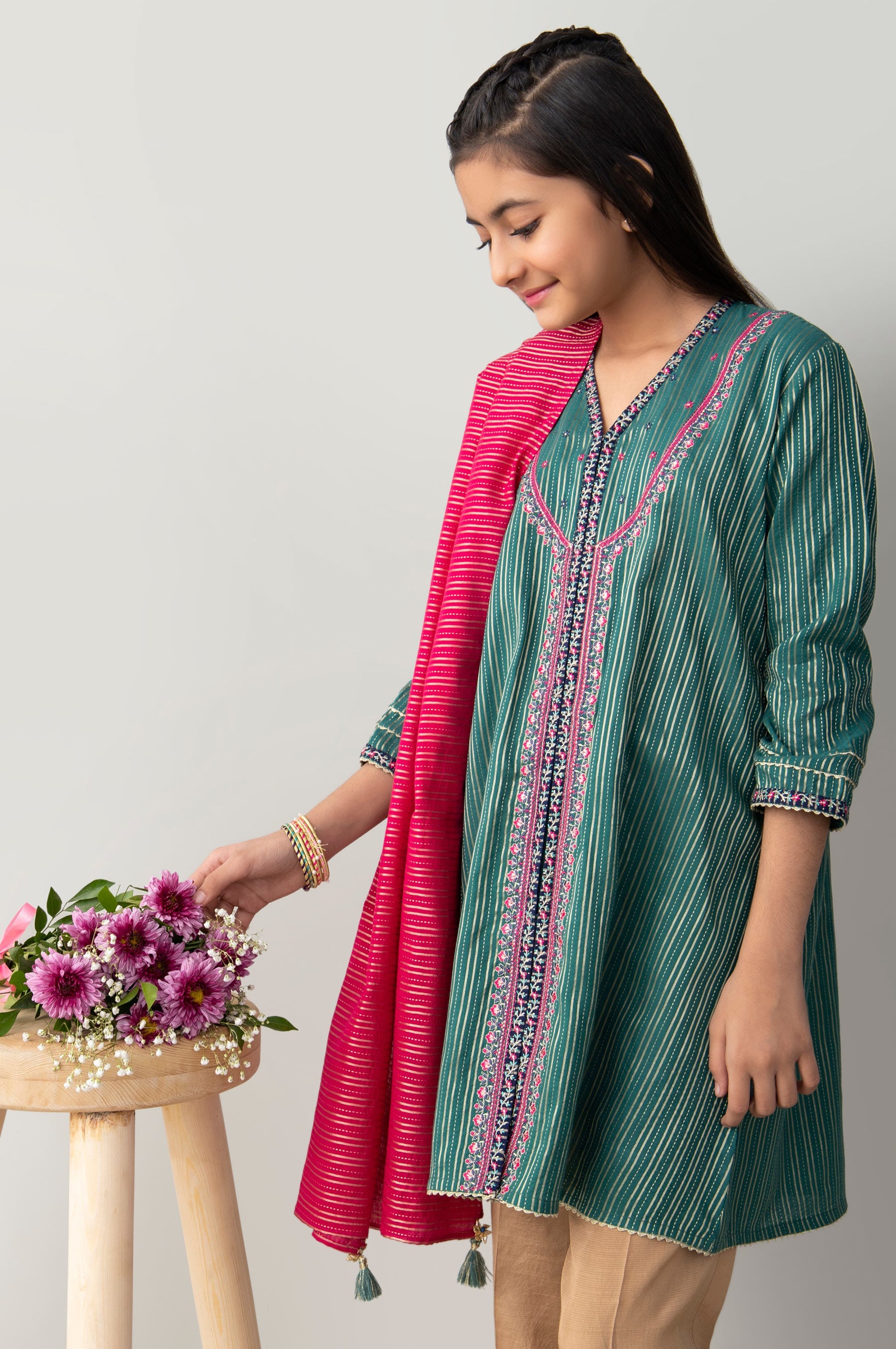 Stitched 2 Piece Embroidered Zari Stripe Junior Suit