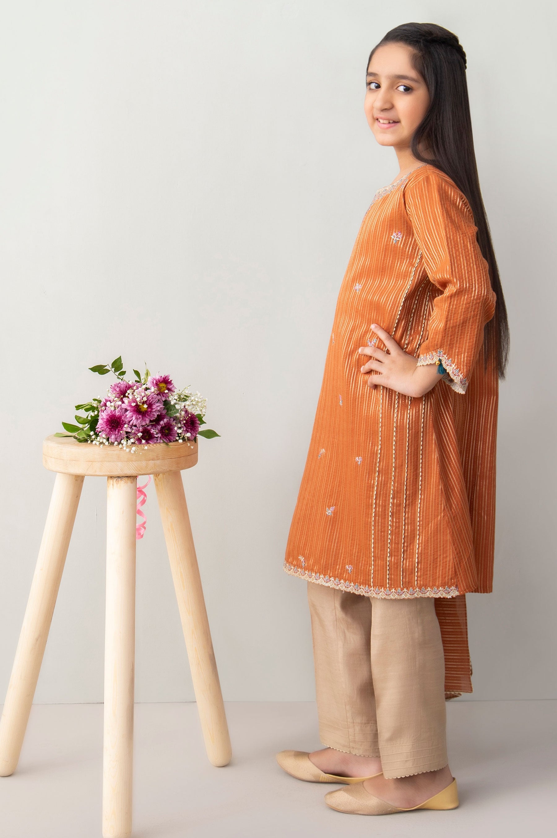 Stitched 2 Piece Embroidered Zari Stripe Junior Suit