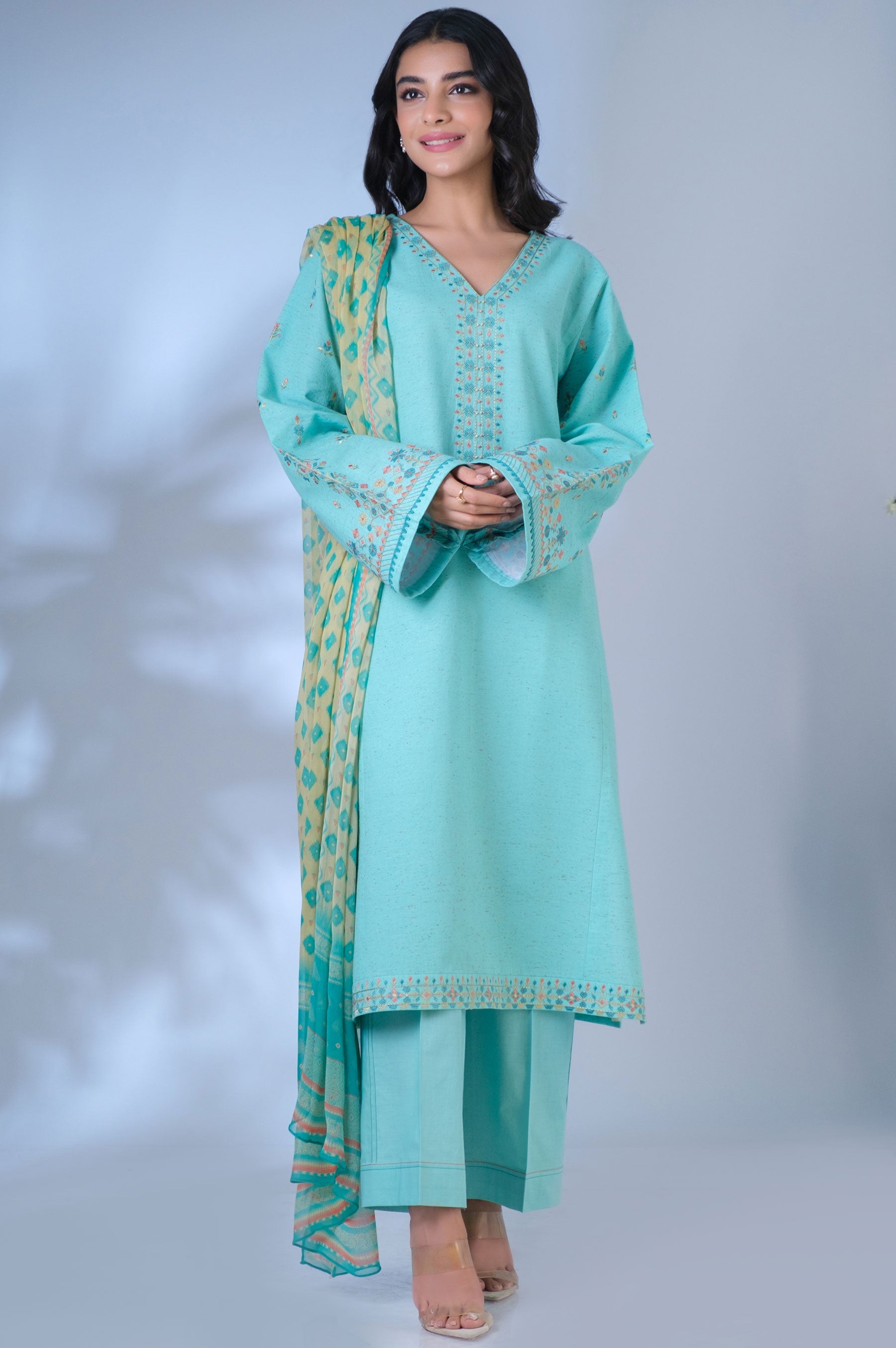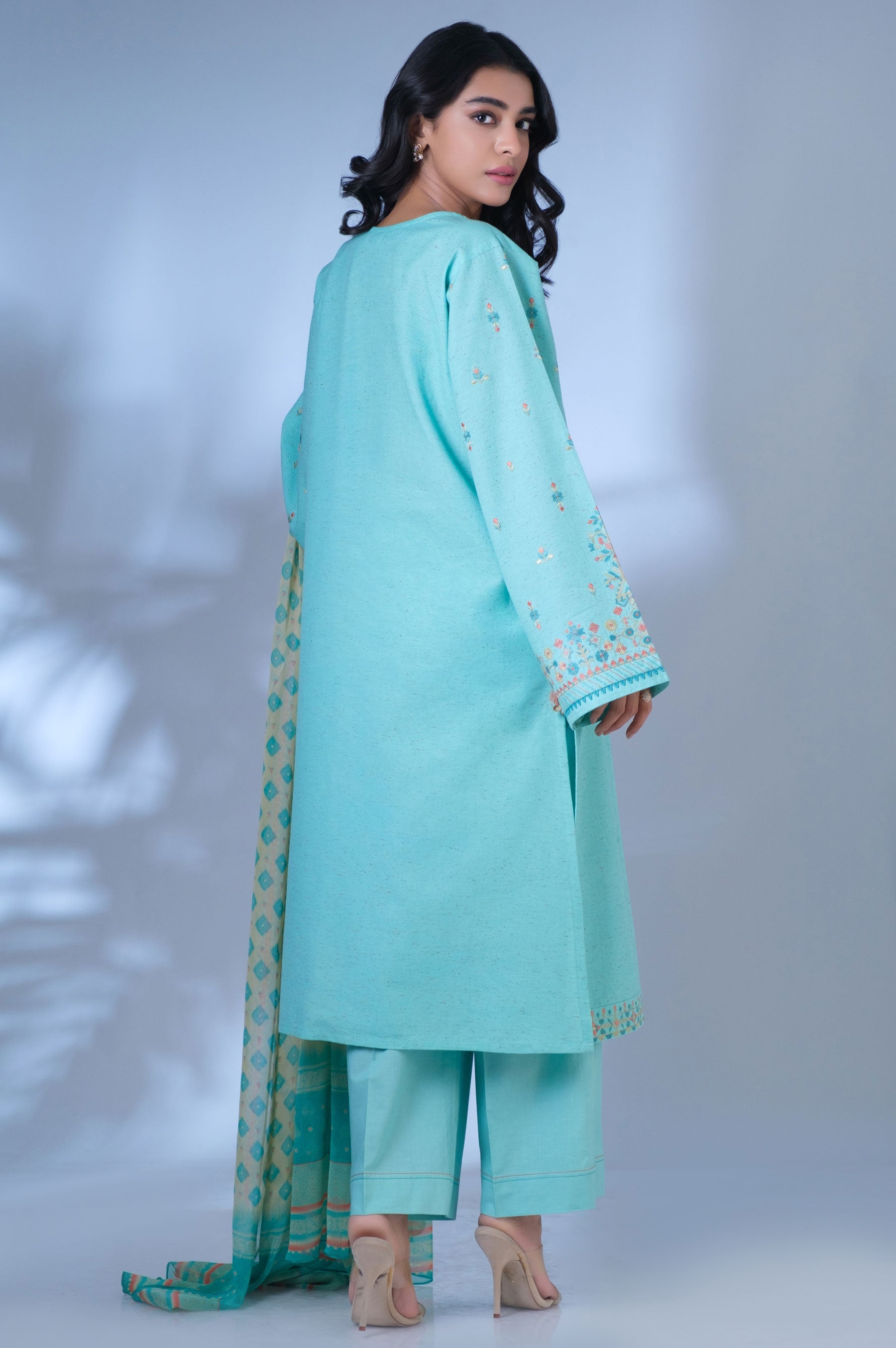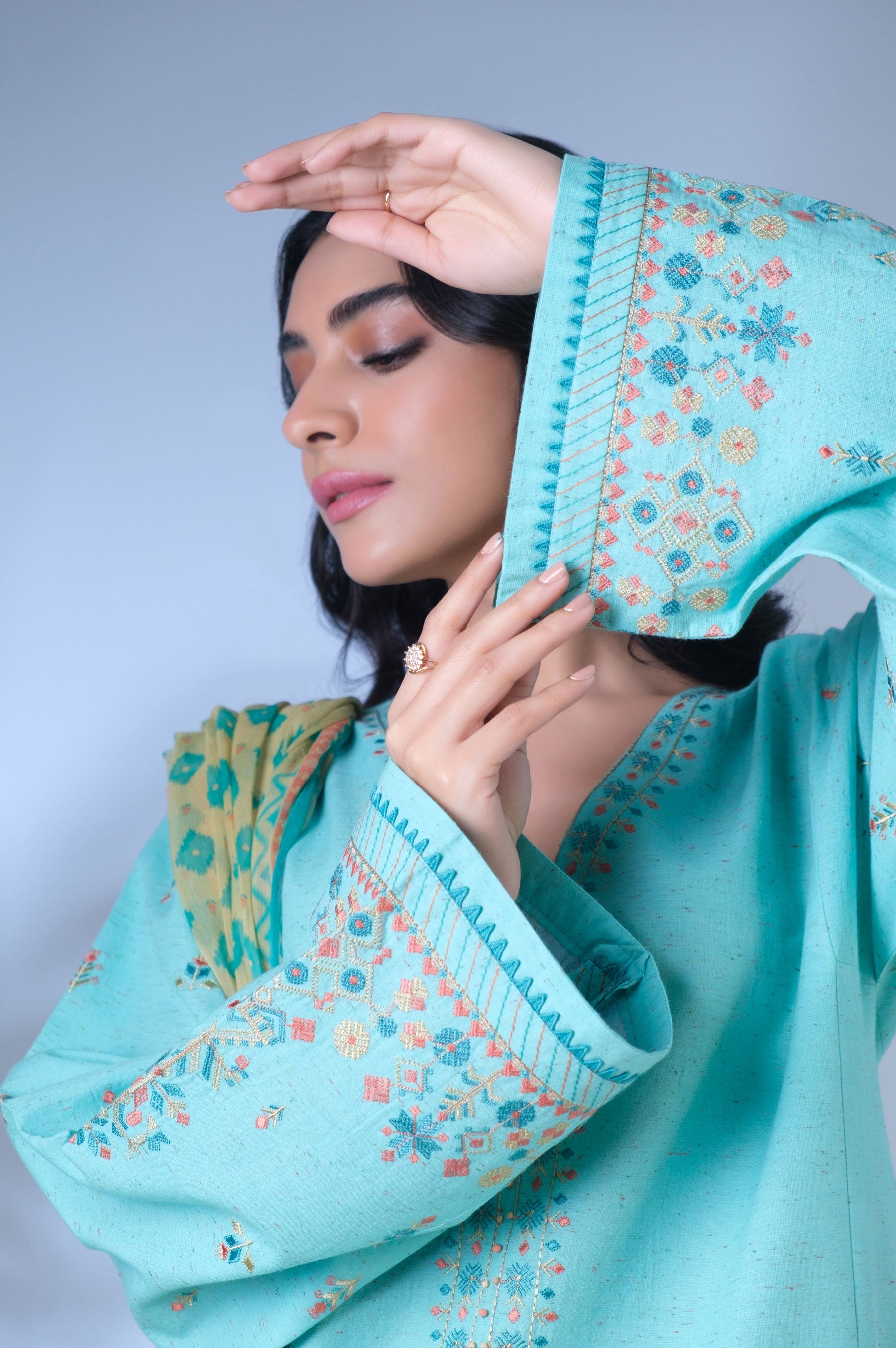 A traditionally rich composition of embroidery is portrayed on this mint green shirt. A unique palette of color is portrayed over the shirt styled according to the trend. Paired with a matching trouser and a gracefully draped dupatta composed in attractive motifs, embrace the gorgeous look this season.
