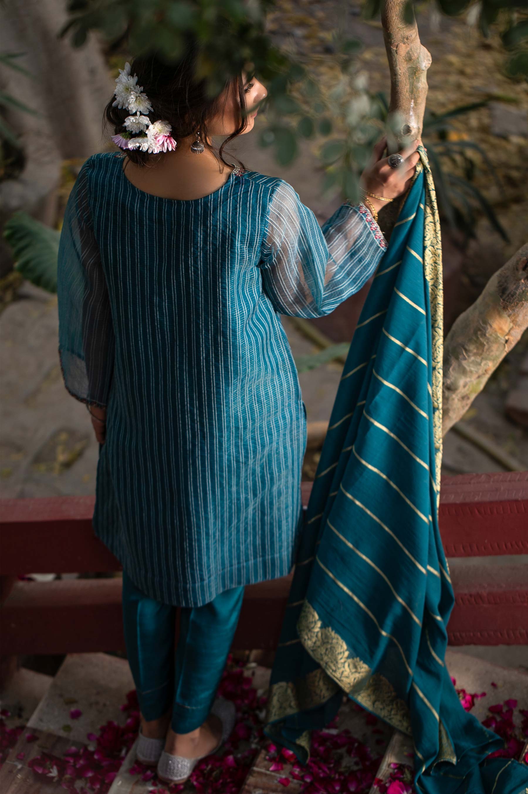 Embroidered Shirt, Raw Silk Bottom, Khaddi Net Dupatta