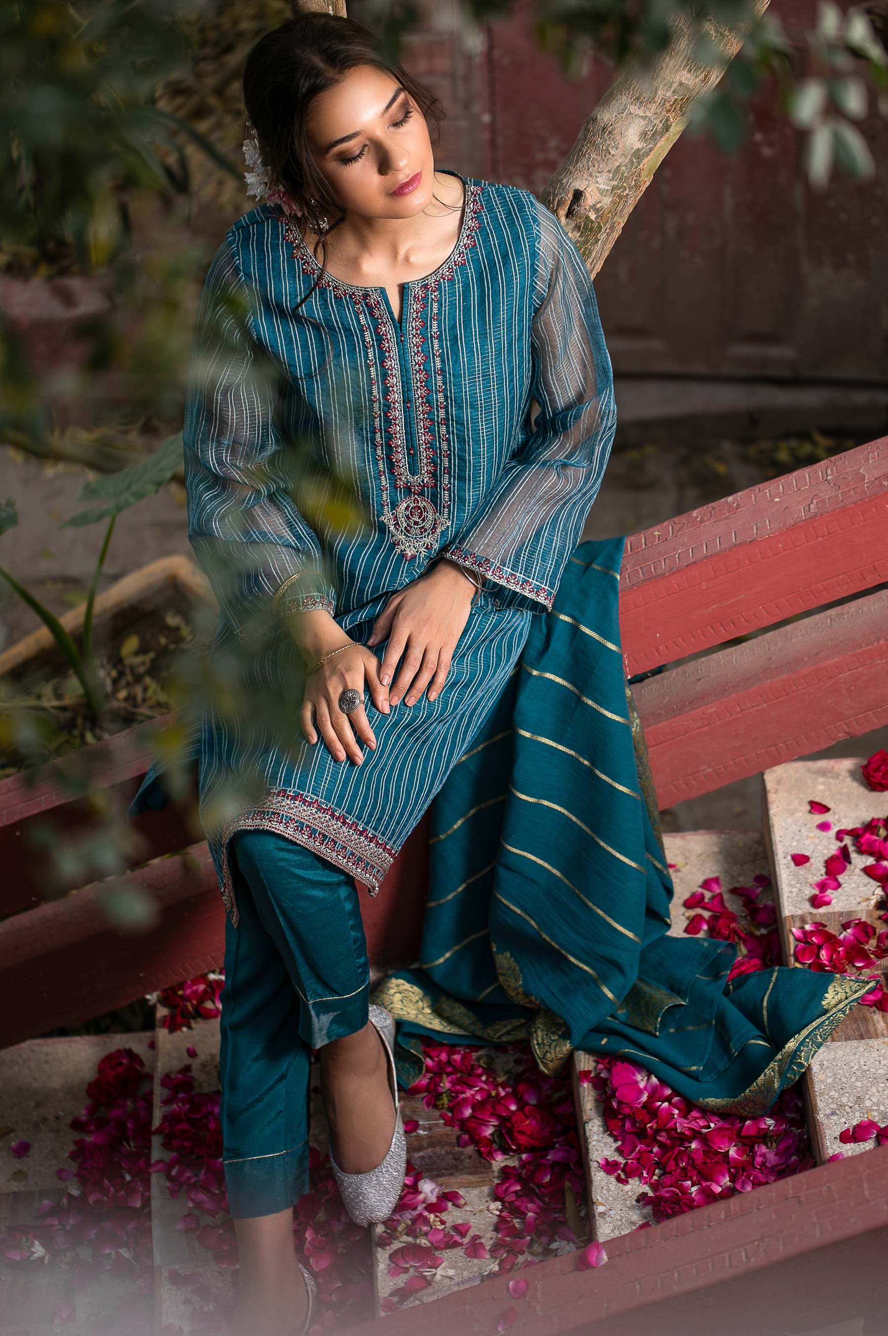Stitched 3 Piece Checkered Organza Embroidered Suit