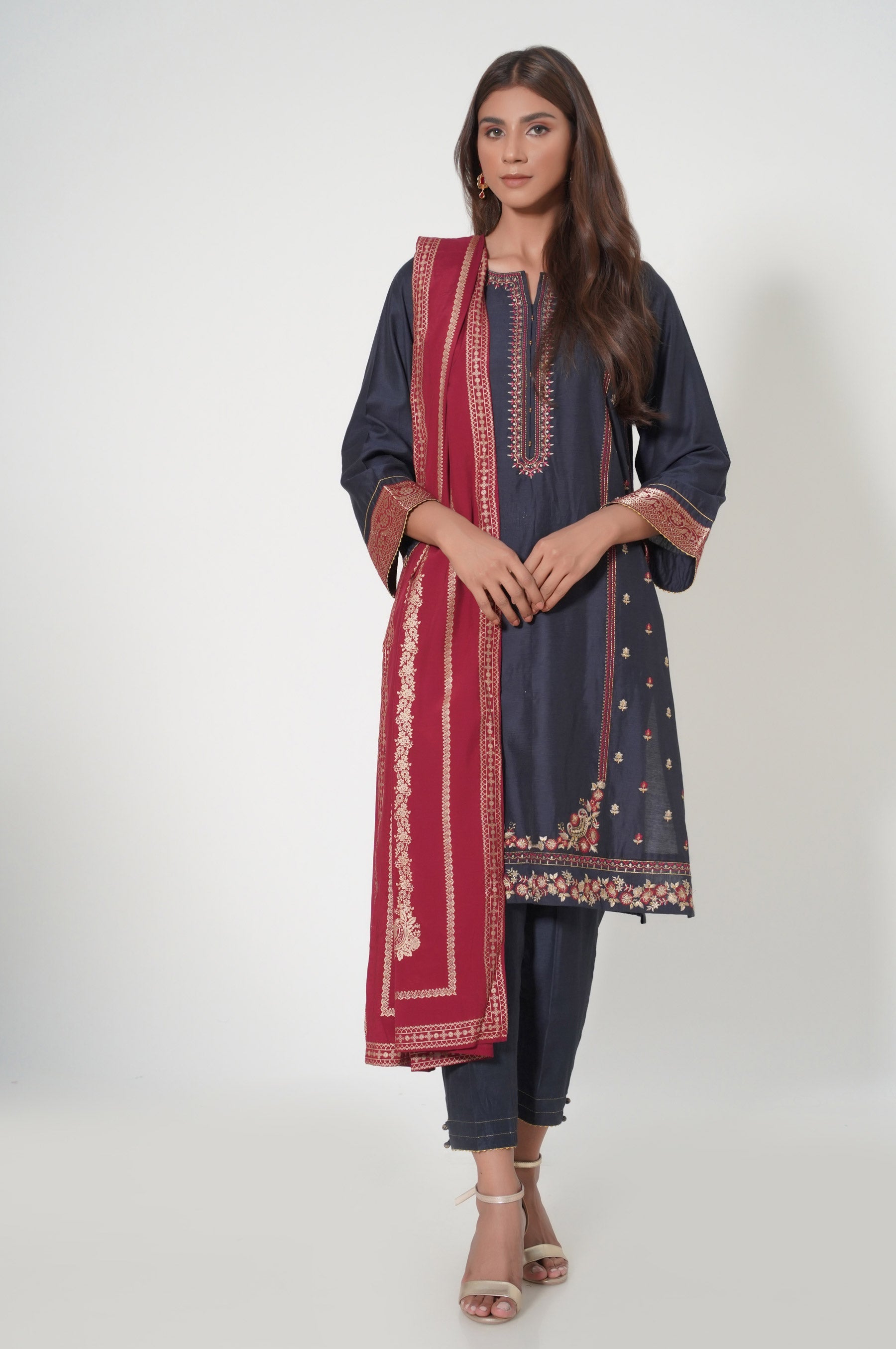 Stitched 3 Piece Cotton Silk Embroidered Outfit