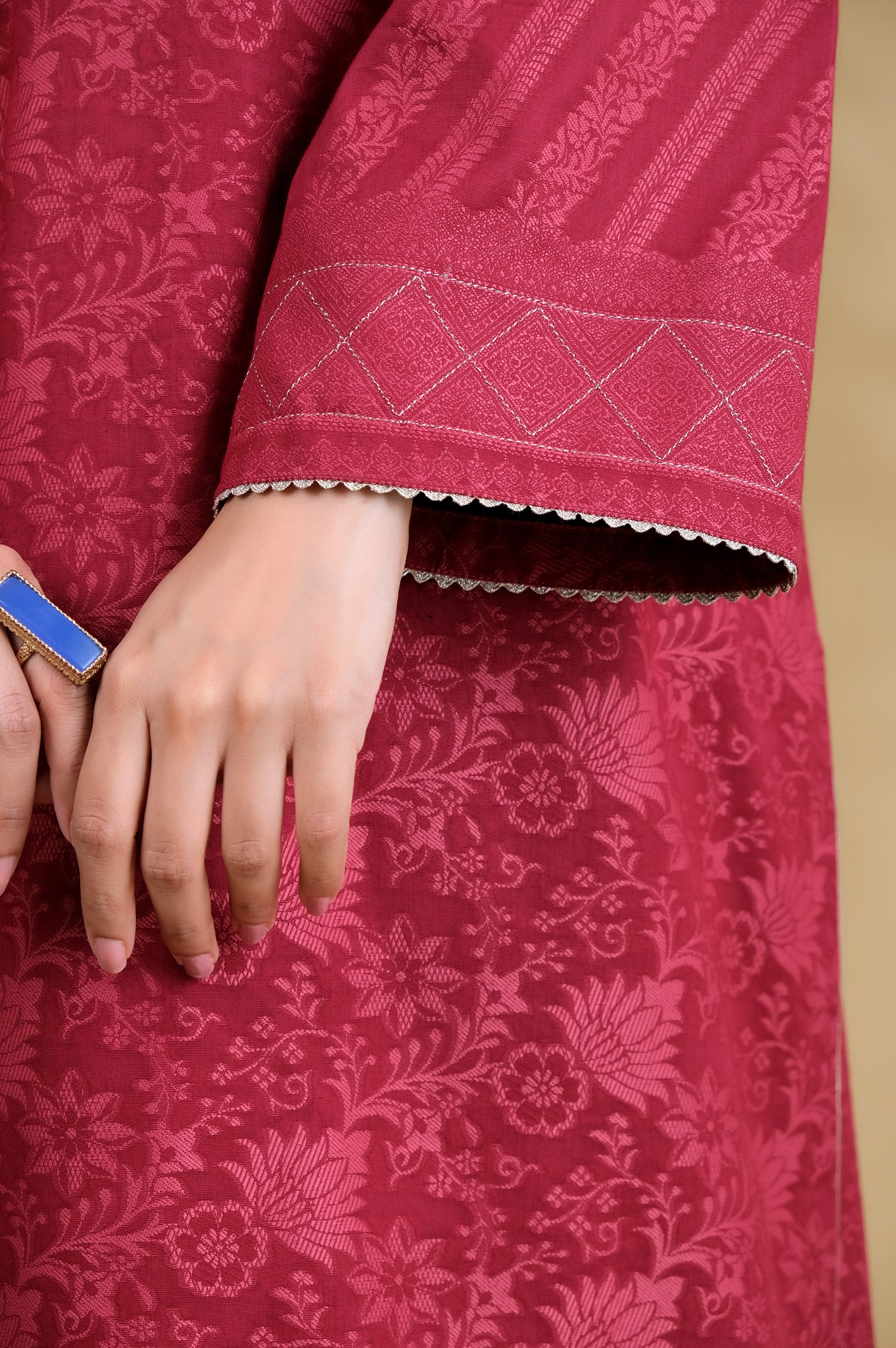 Radiate confidence in this charming color palette. Featuring a coloured floral jacquard dupatta with a floral self jacquard shirt.