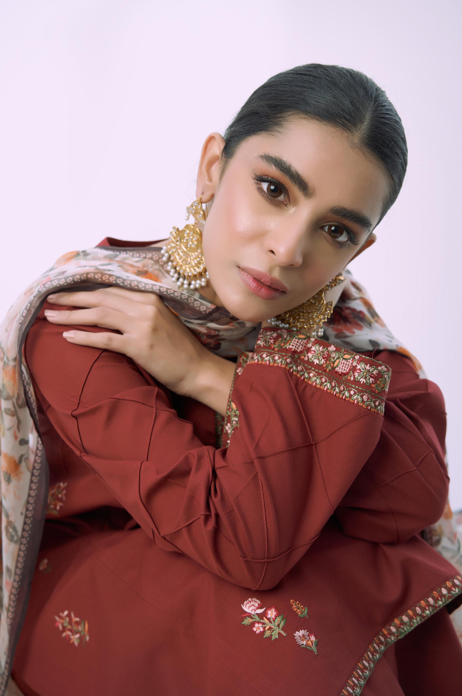 Stitched 3 Piece Embroidered Cambric with Chiffon Dupatta