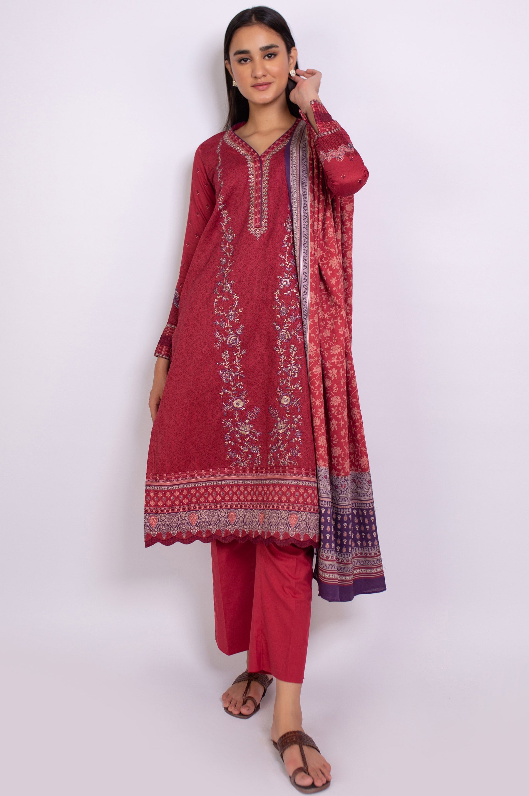 Printed Cottel Shirt with Embroidered Neckline, Printed Cottel Dupatta, Dyed Cottel Bottom, Dori for Embellishment