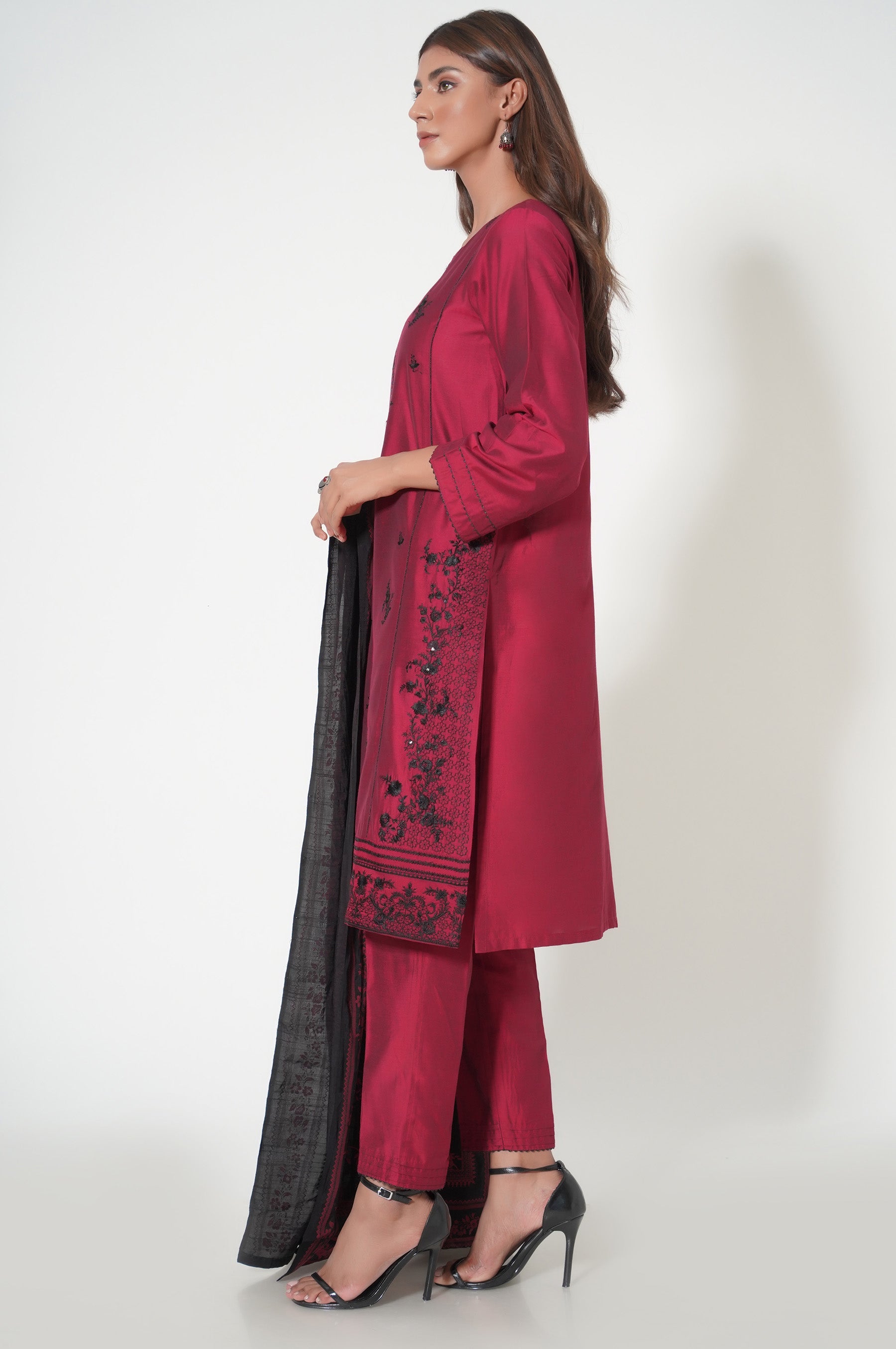 Stitched 3 Piece Embroidered Cotton Silk Outfit