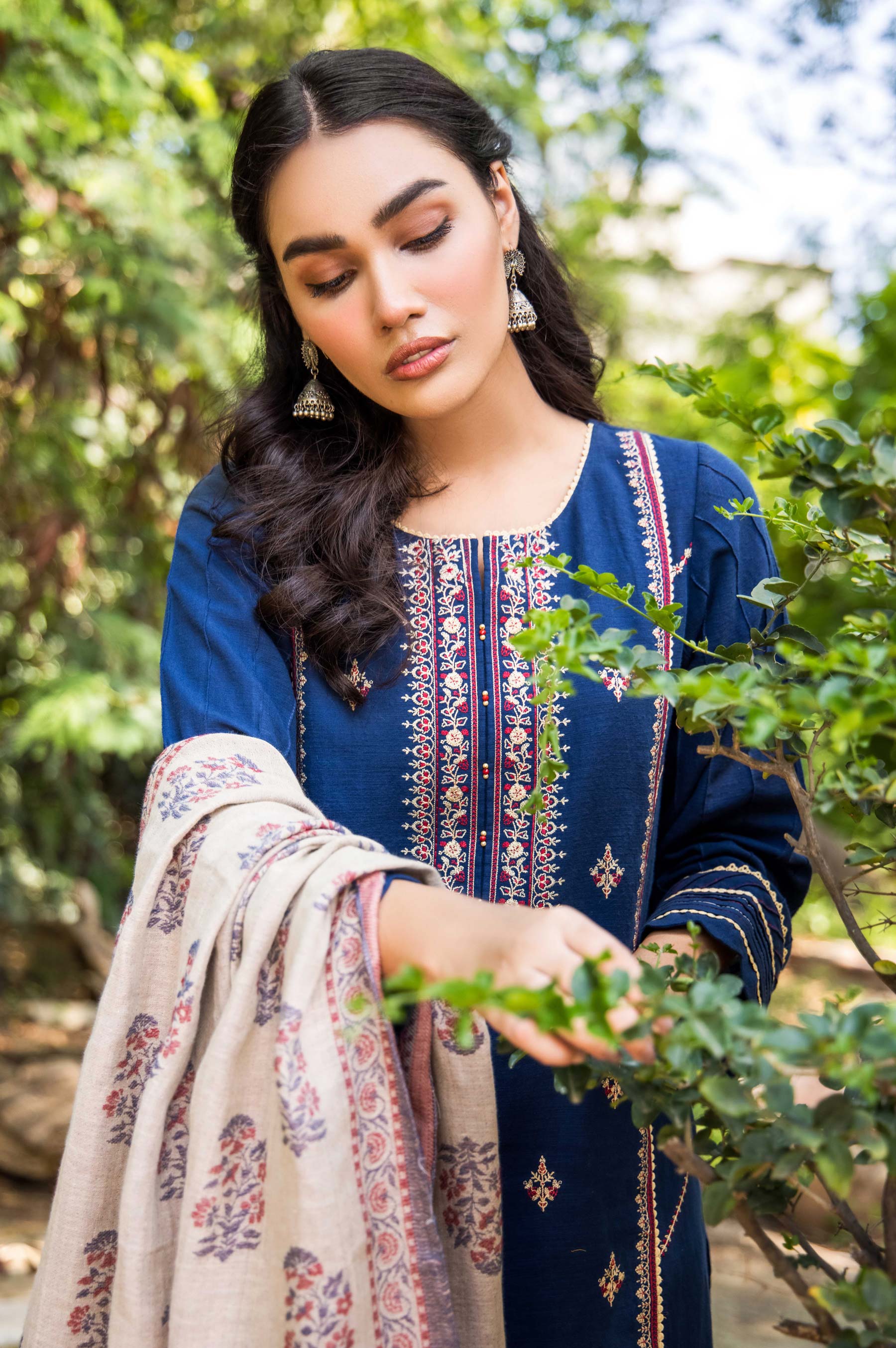 Stitched 3 Piece Embroidered Khaddar with Yarn Jacquard Shawl Suit