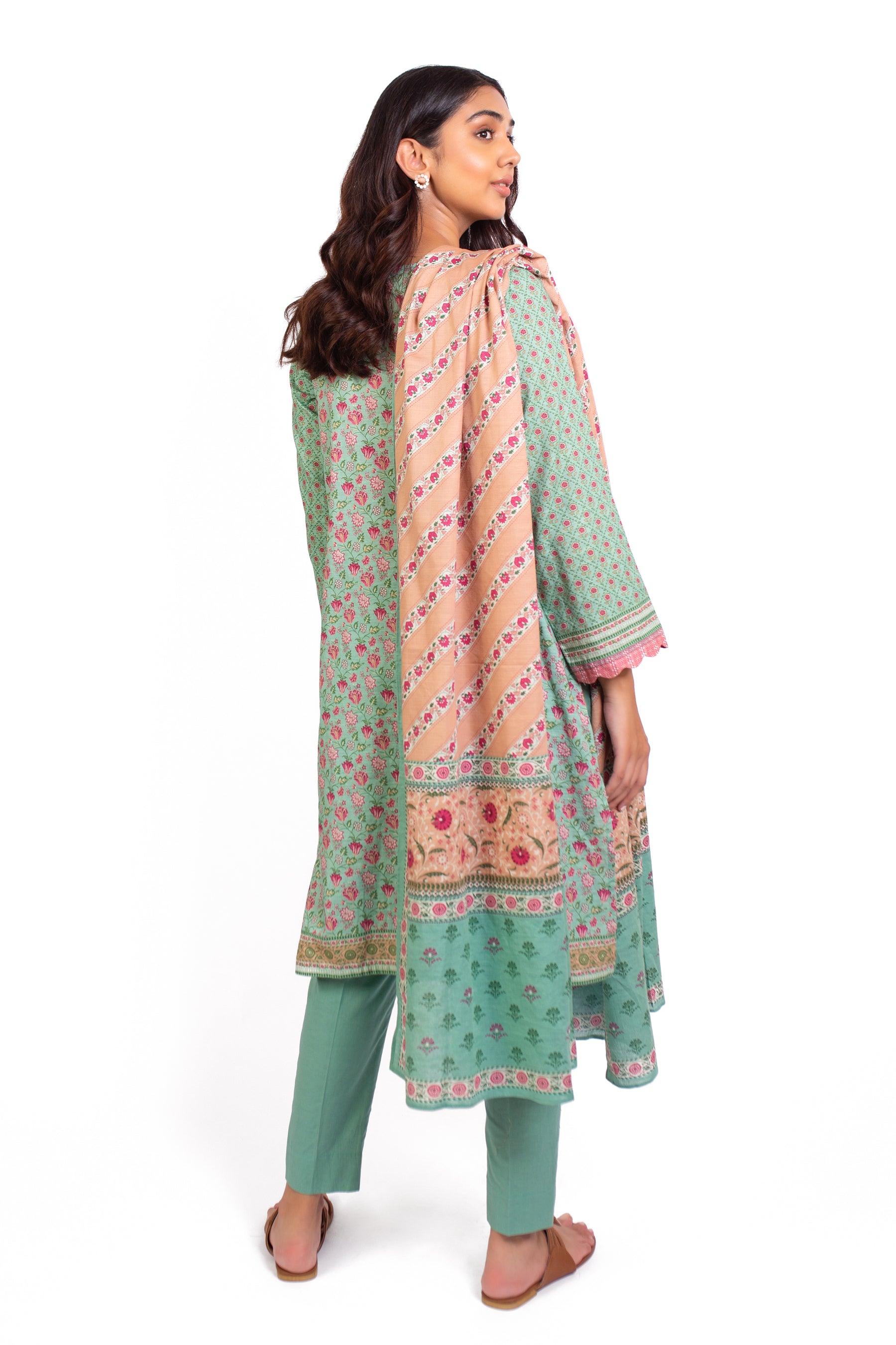 Printed Khaddar Shirt with Embroidered Neckline, Printed Khaddar Dupatta, Dyed Khaddar Bottom, Pearls & Beads for Embellishment
