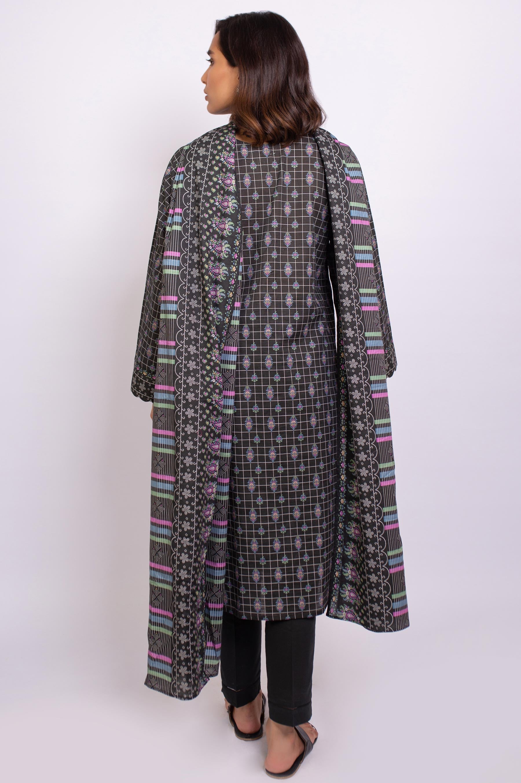 Printed Khaddar Shirt with Embroidered Neckline, Printed Khaddar Dupatta, Dyed Khaddar Bottom, Pearls, Beads & Lace for Embellishment