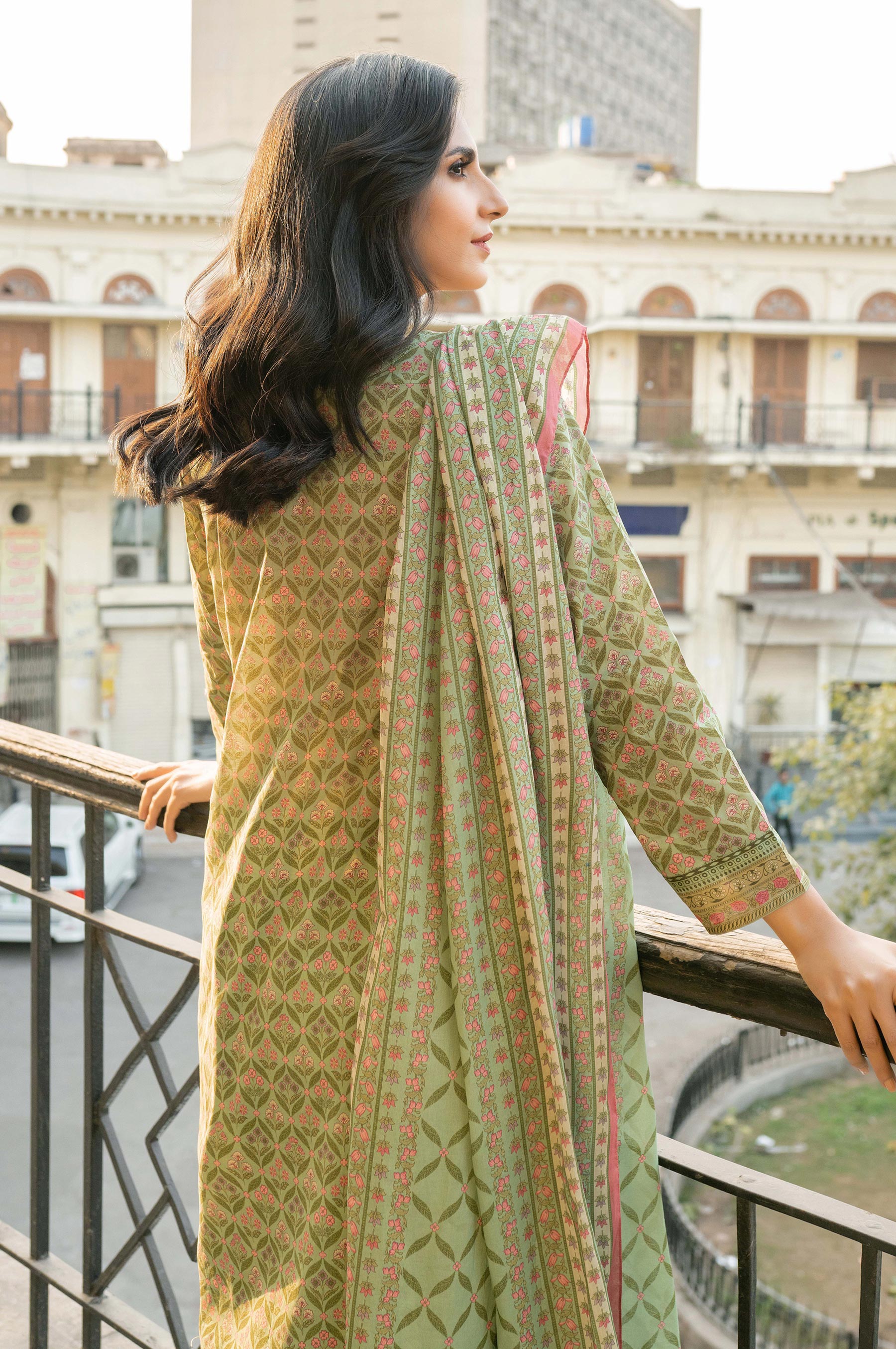 Printed Lawn Shirt with Embroidered Neckline, Printed Lawn Dupatta, Dyed Cambric Bottom, Pearls for Embellishment,