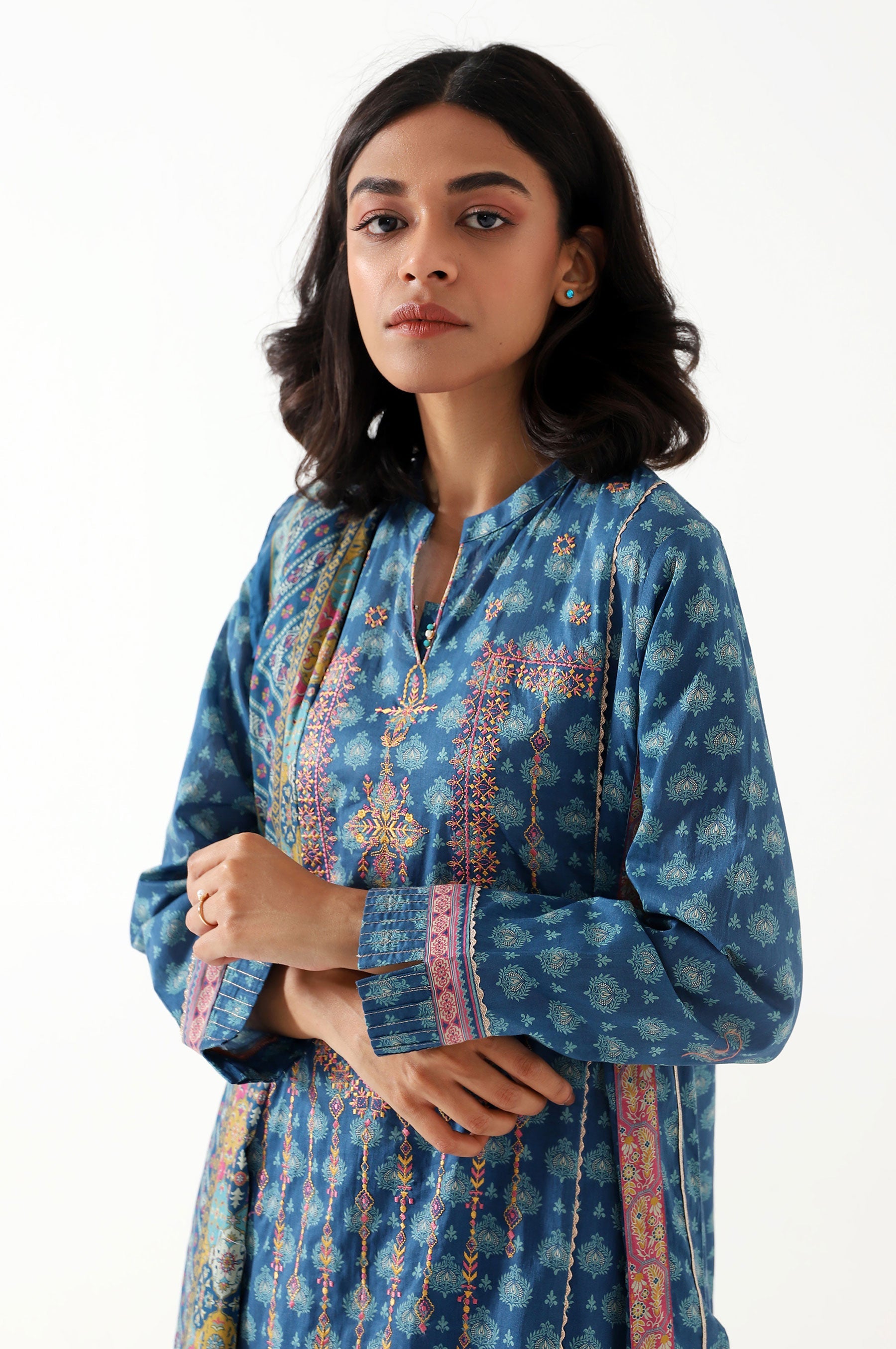 Printed Lawn Shirt with Embroidered Neckline & Front, Printed Lawn Dupatta, Dyed Cambric Bottom,Pearls, Beads, Sequins, Dori & Lace for Embellishment