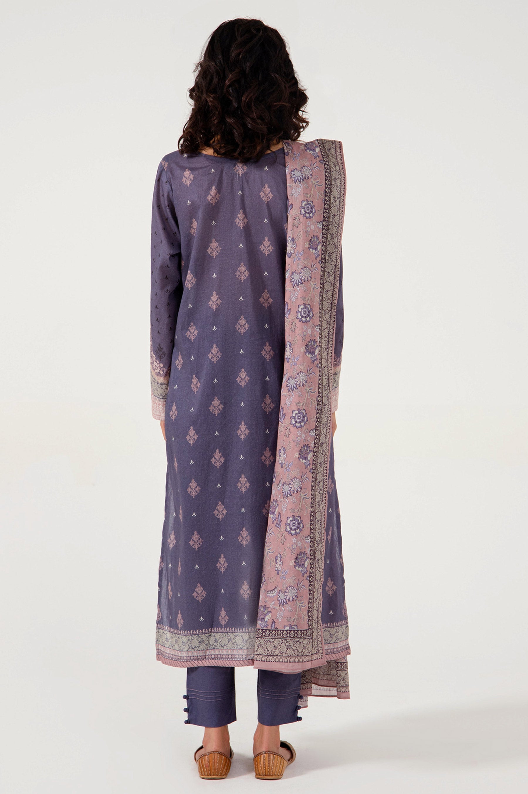 Printed Lawn Shirt with Embroidered Neckline & Front, Printed Cotton Net Dupatta, Dyed Cambric Bottom, Pearls, Dori & Beads for Embellishment