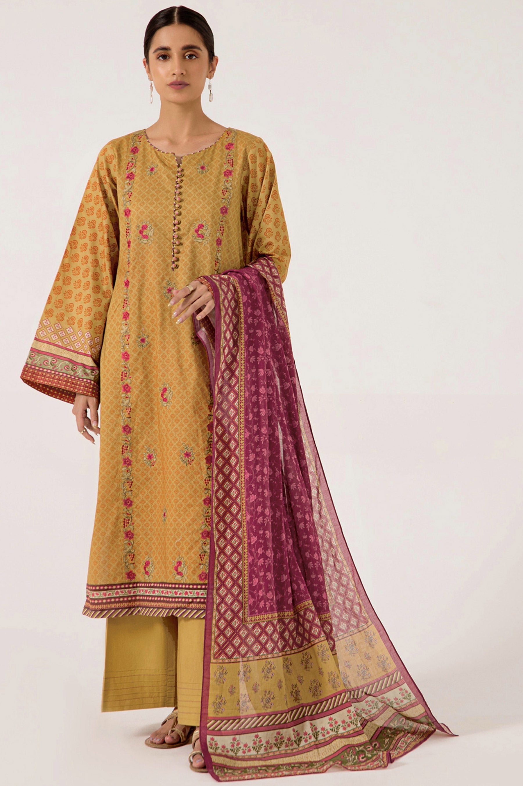 Stitched 3 Piece Embroidered Lawn with Cotton Net Suit