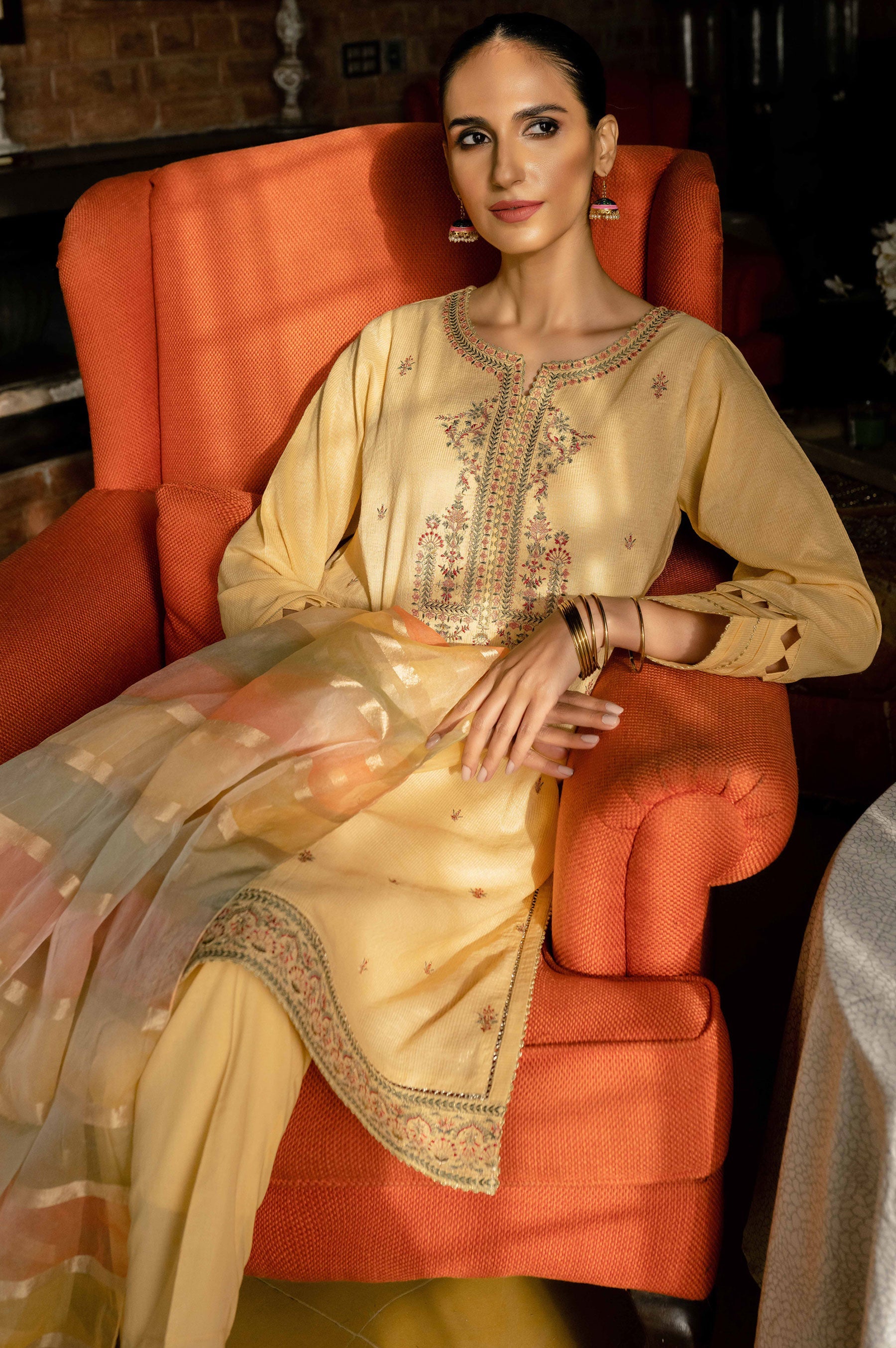 Stitched 3 Piece Embroidered Maysuri Suit with Shaded Organza Dupatta