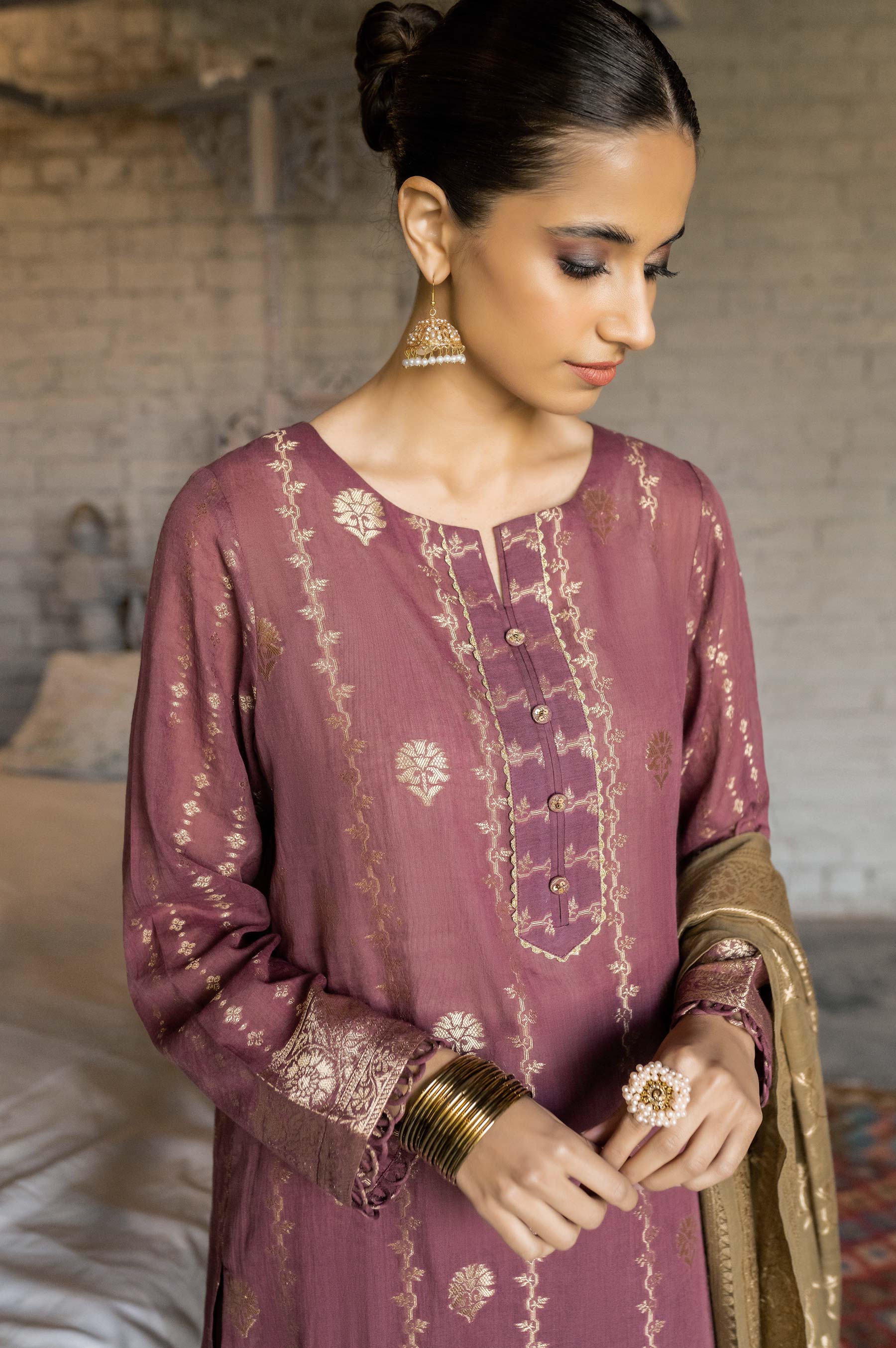 Stitched 3 Piece Jacquard Suit with Jacquard dupatta