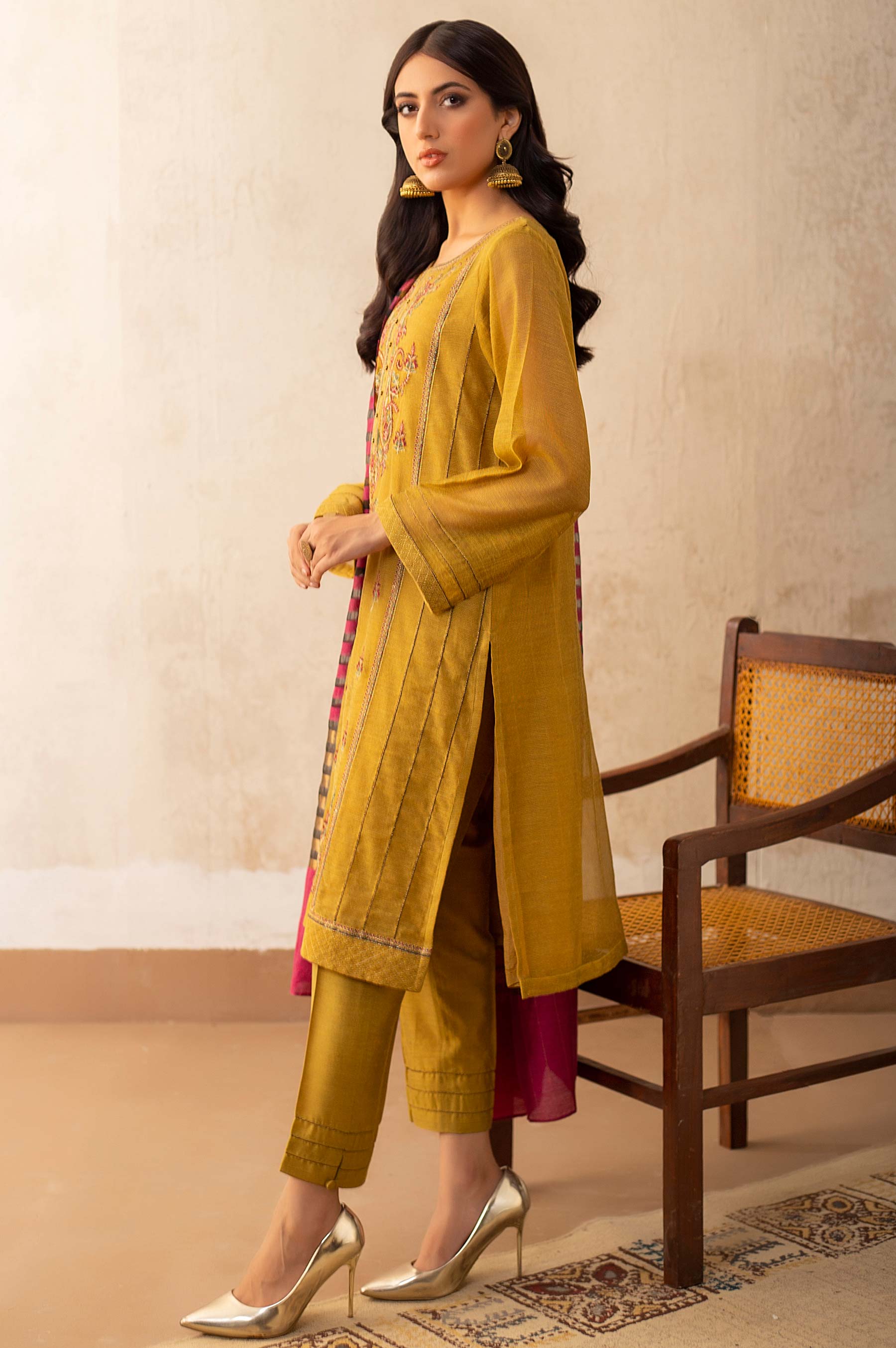 Stitched 3 Piece Khaddi Net Embroidered Suit