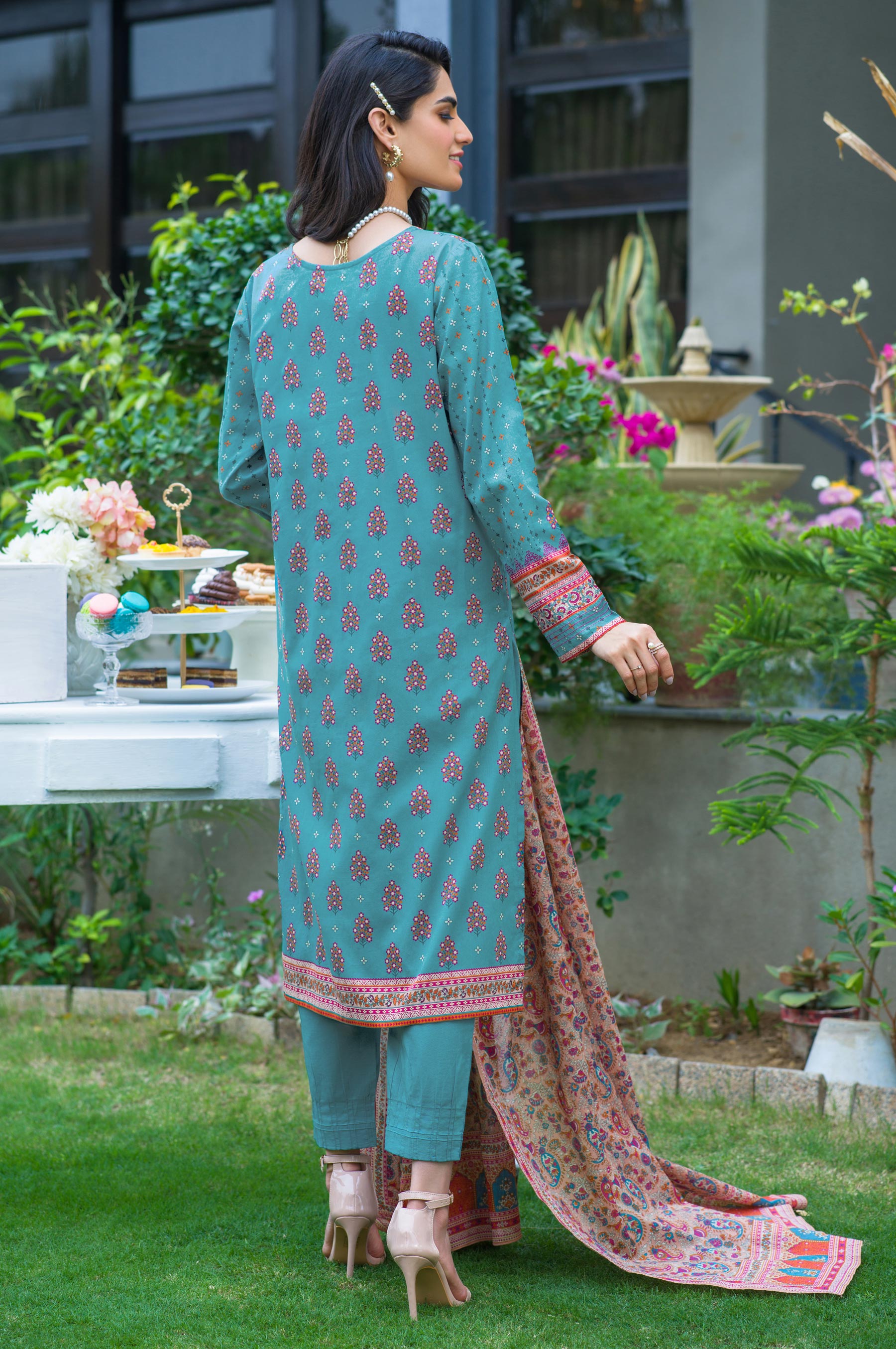 Printed Lawn Shirt, Printed Lawn Dupatta, Dyed Cambric Bottom, Dori & Pearls for Embellishment.