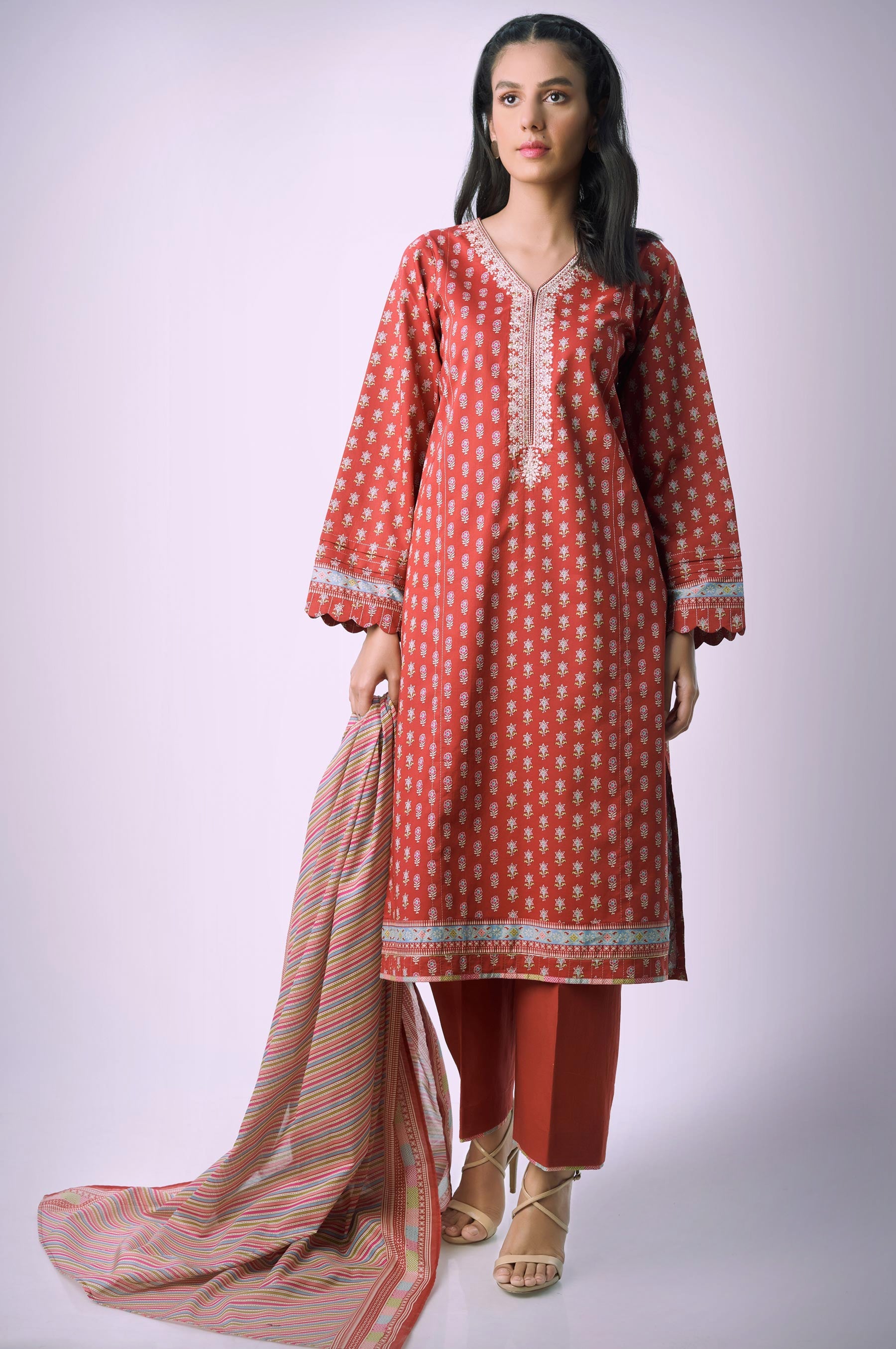 Fusion of classic and traditional, a colorful stripe dupatta with hand block-printed pattern shirt along with delicate embroidery work on the neckline adding the charm.