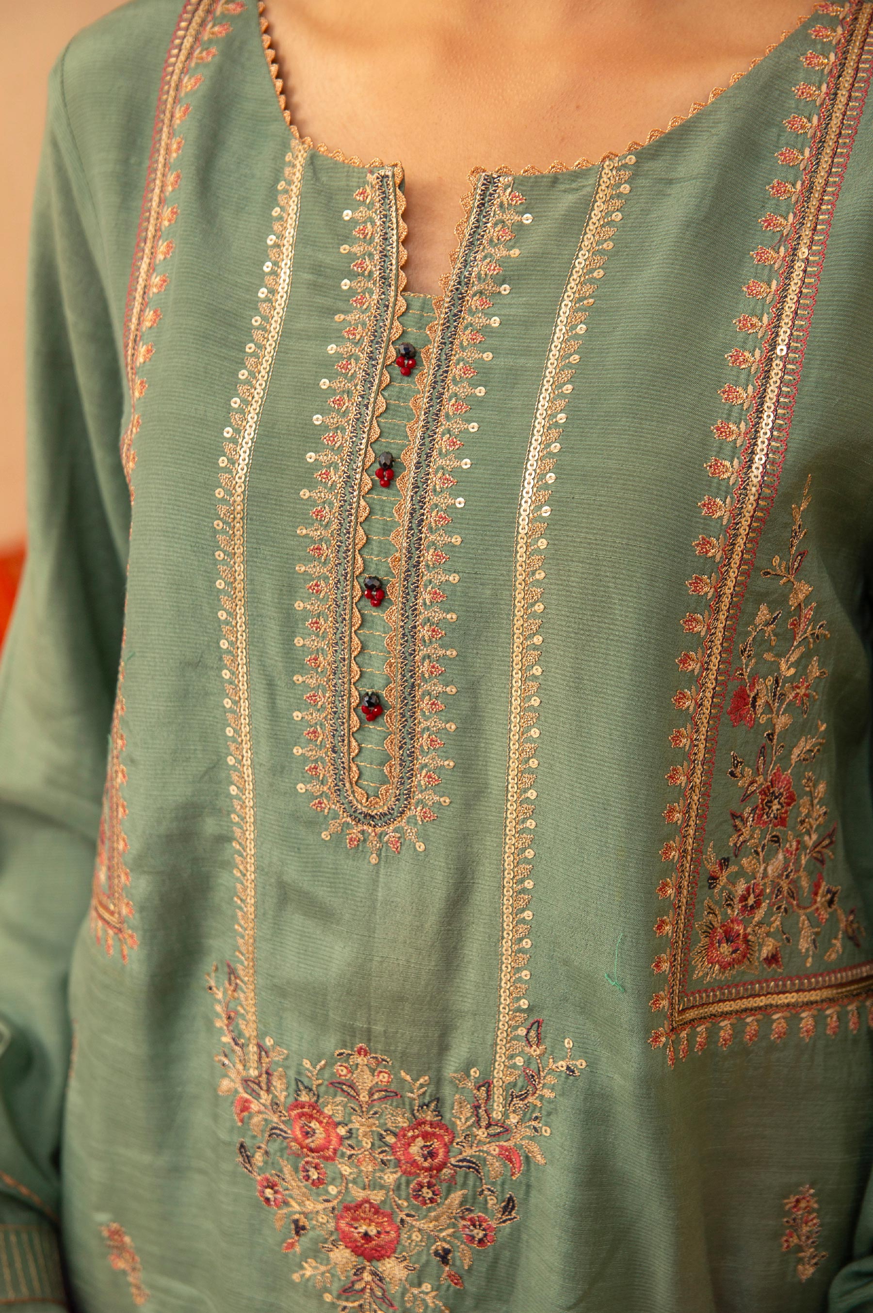 Stitched 3 Piece Raw Silk Embroidered Suit