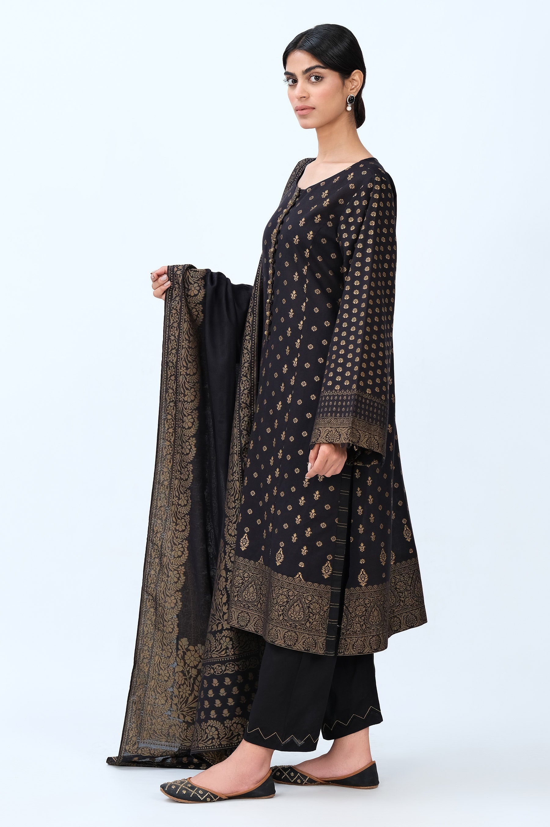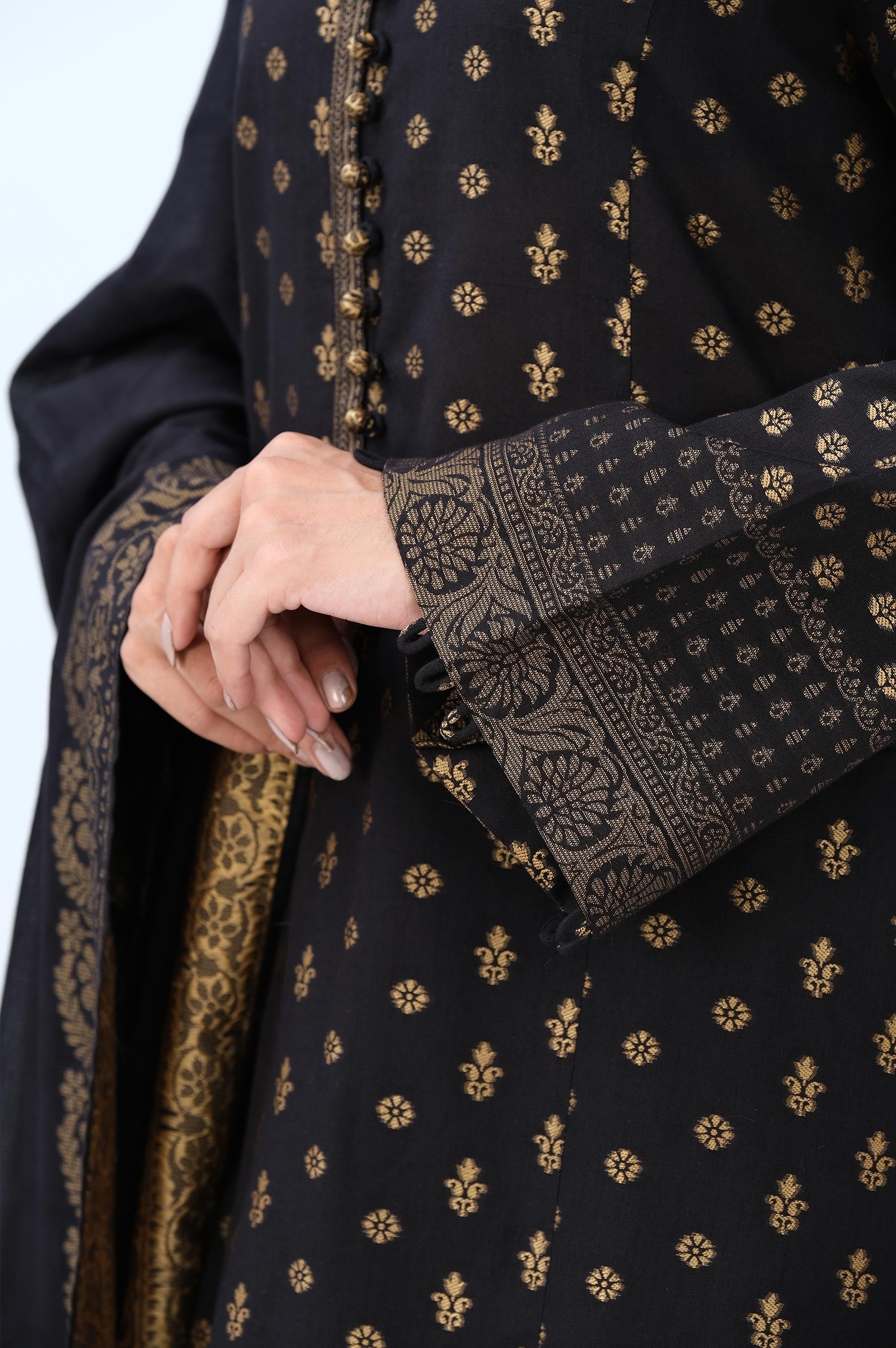 Yarn Dyed Jacquard Shirt, Yarn Dyed Jacquard Dupatta, Dyed Cambric Bottom, Pearls for Embellishment