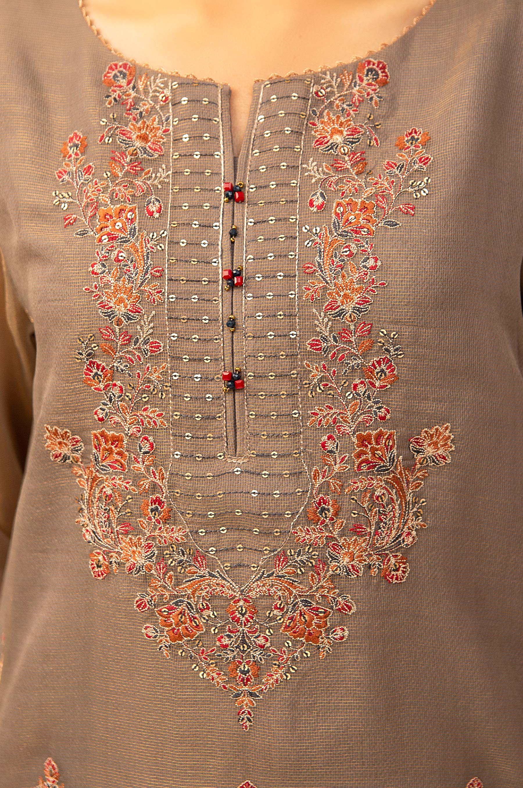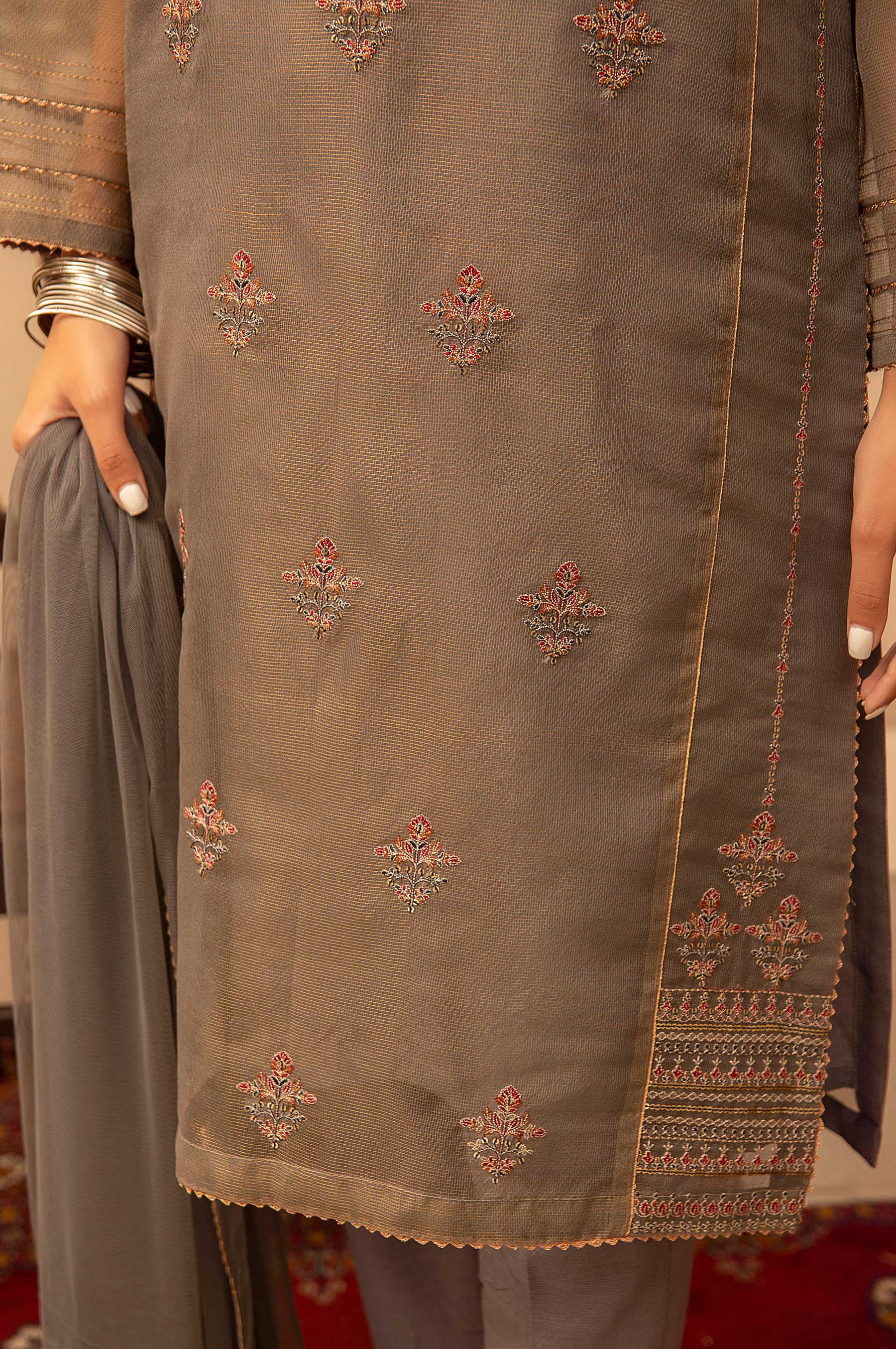 Stitched 3 Piece Zari Net Embroidered Suit