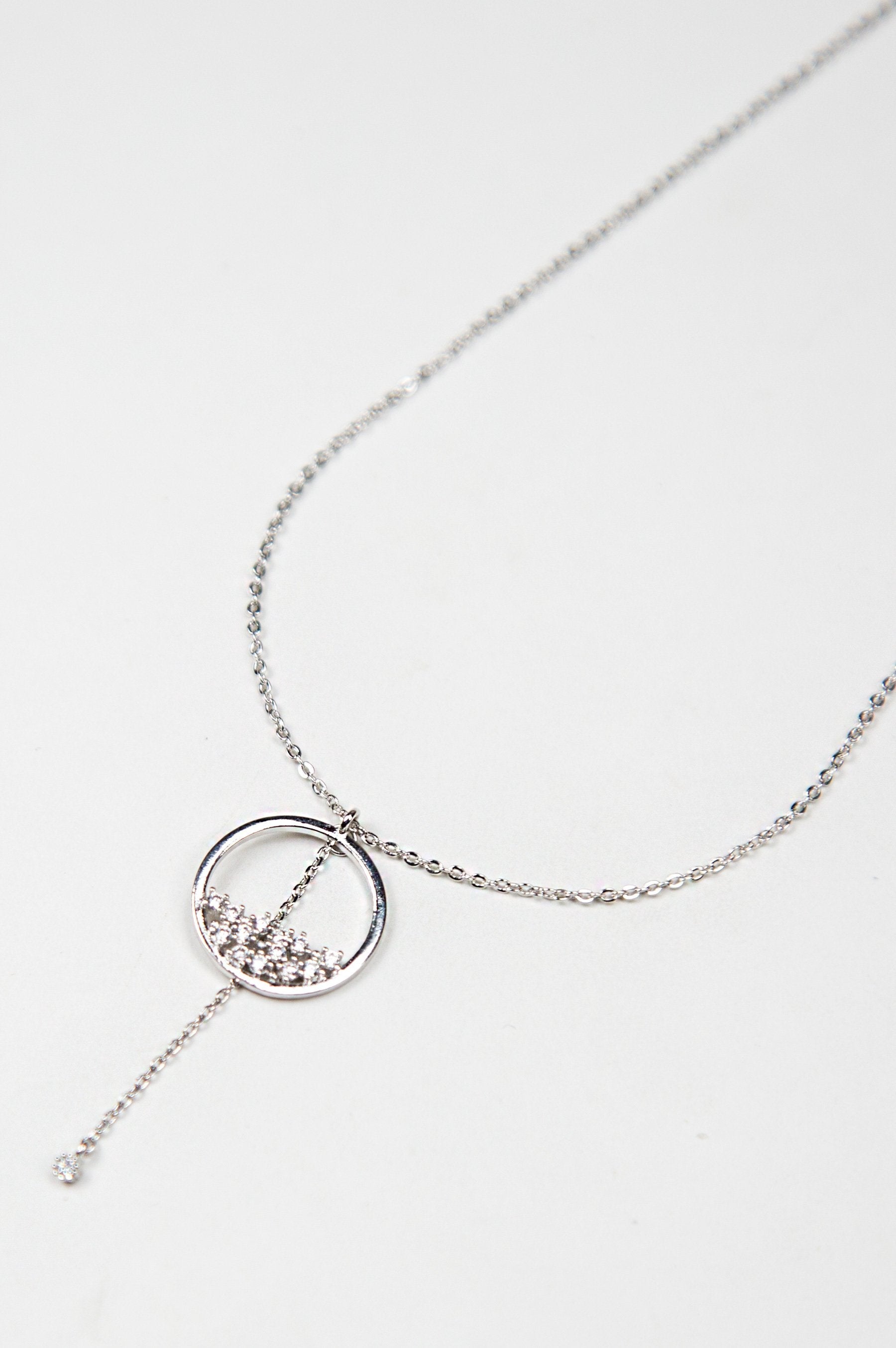 A delicate cluster of stones in a circular casing reminds of a moon silhouette.