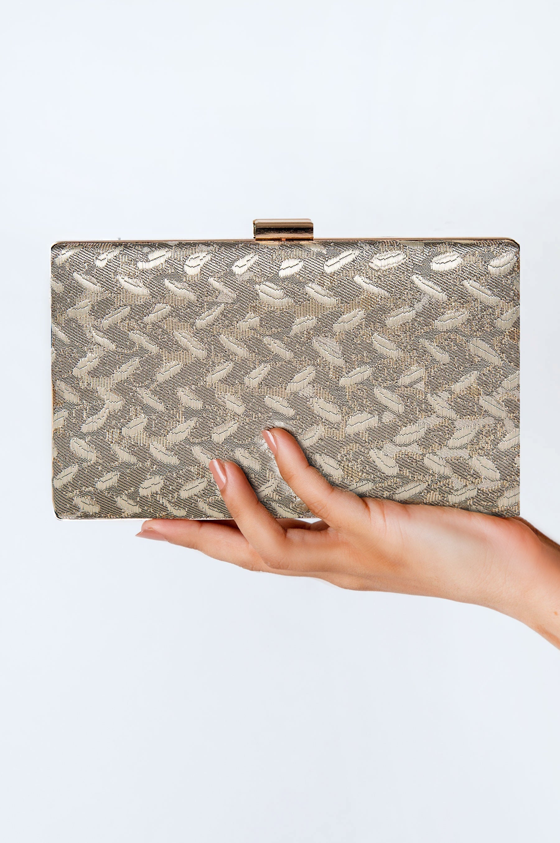 A minimalist chic clutch at its finest. Woven in brocade, in hues of silver greys, creams and a hint of gold. This one is a class apart.