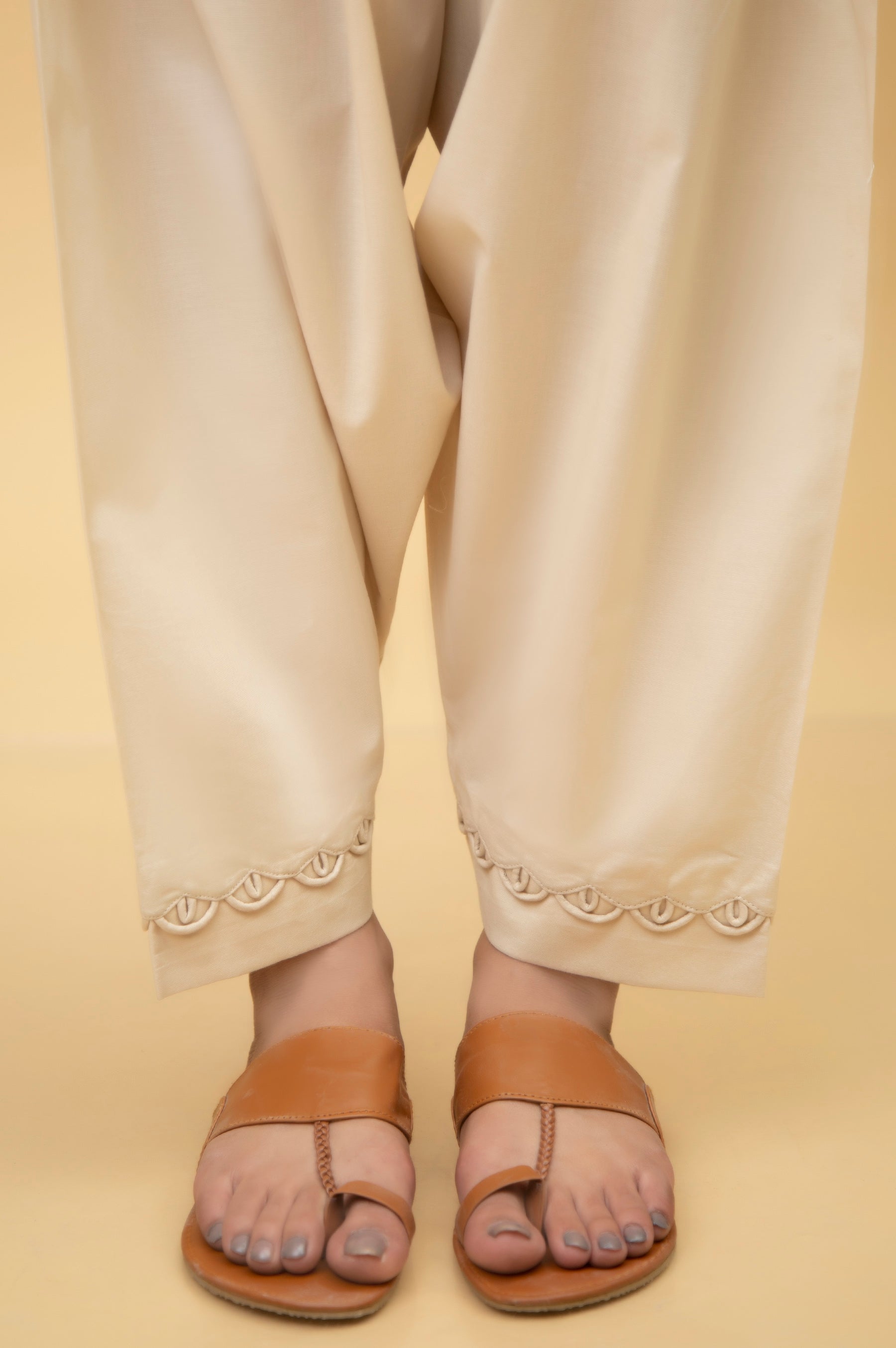 This statement shalwar features in fabrics manipulation on the hem is good to go with any casual shirt.x.