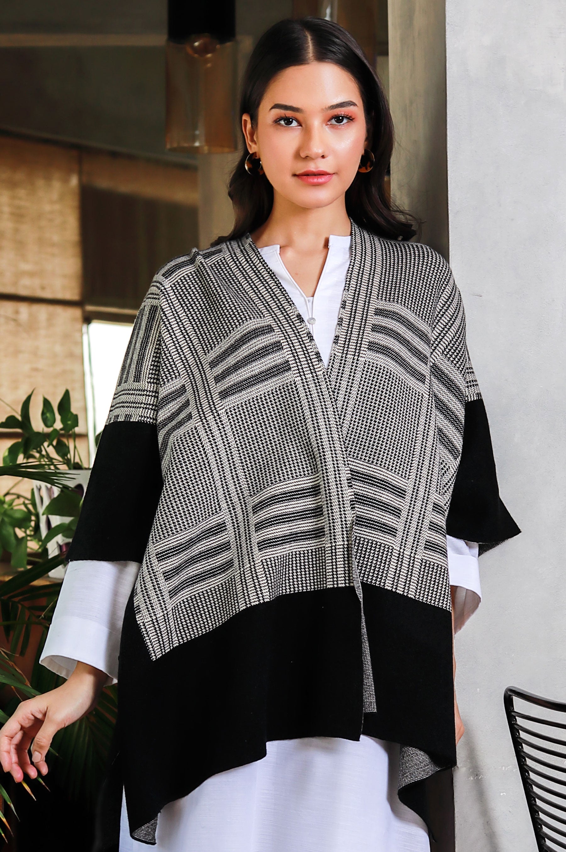 Versatile & chic. This chunky cape shawl in tartan stripes gives you a relaxed feel and warmth at the same time for this season. Wear this wrap for all your winter outings!