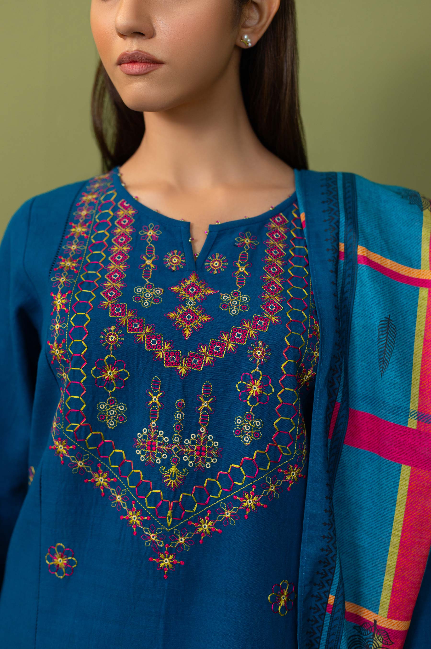 Unstitched 2 Piece Dyed Embroidered Khaddar Shirt with Dupatta