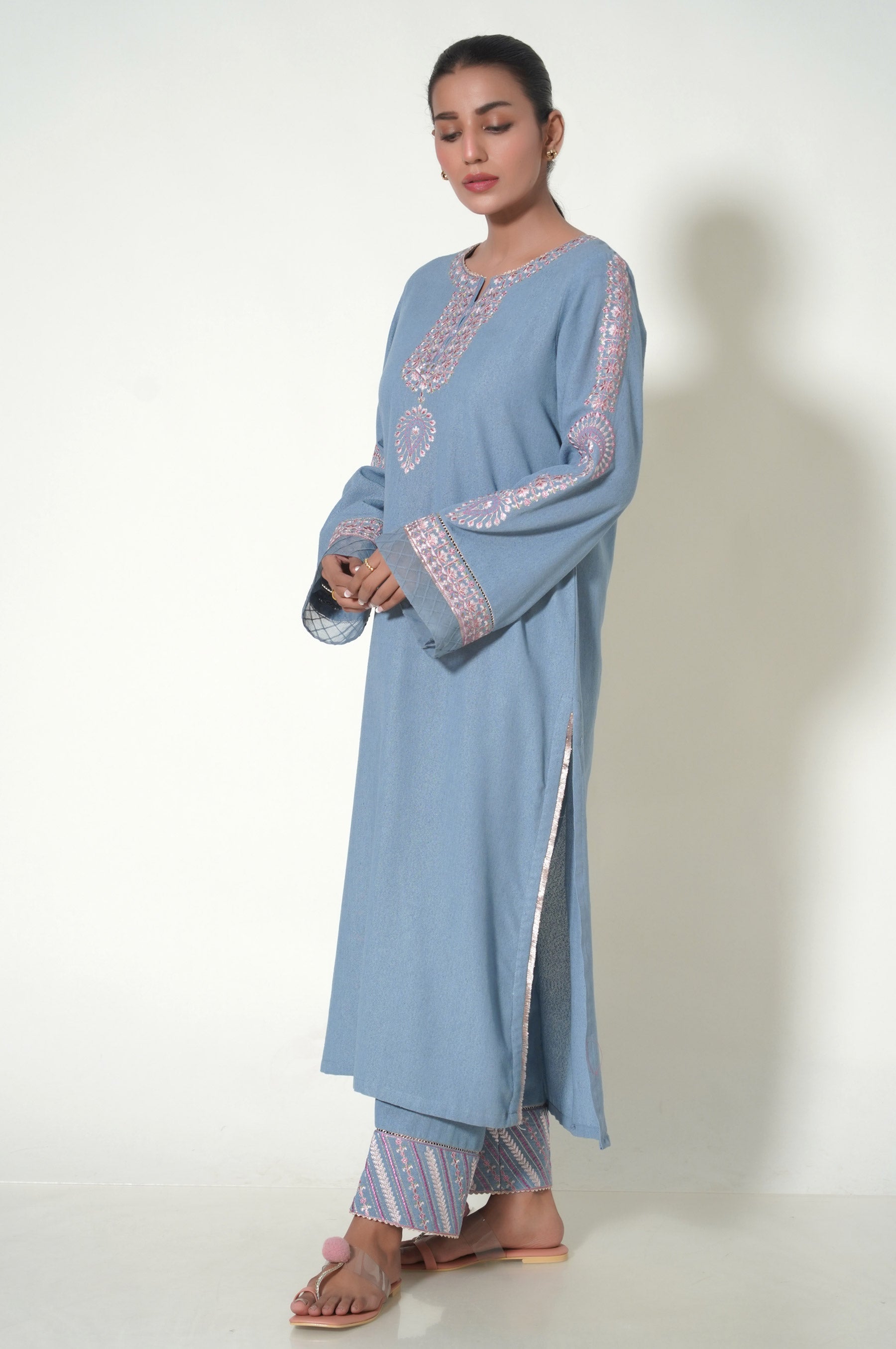 Unstitched 2 Piece Dyed Embroidered Karandi Suit