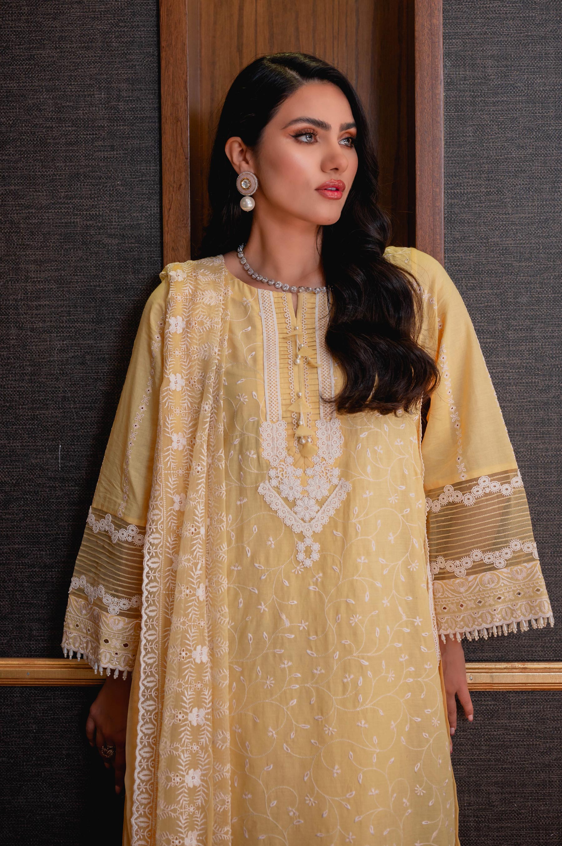 2.75 Yards Dyed Chikankari Lawn Shirt, 2.75 Yards Dyed Chikankari Chiffon Dupatta, 2 Meters Dyed Cambric Bottom