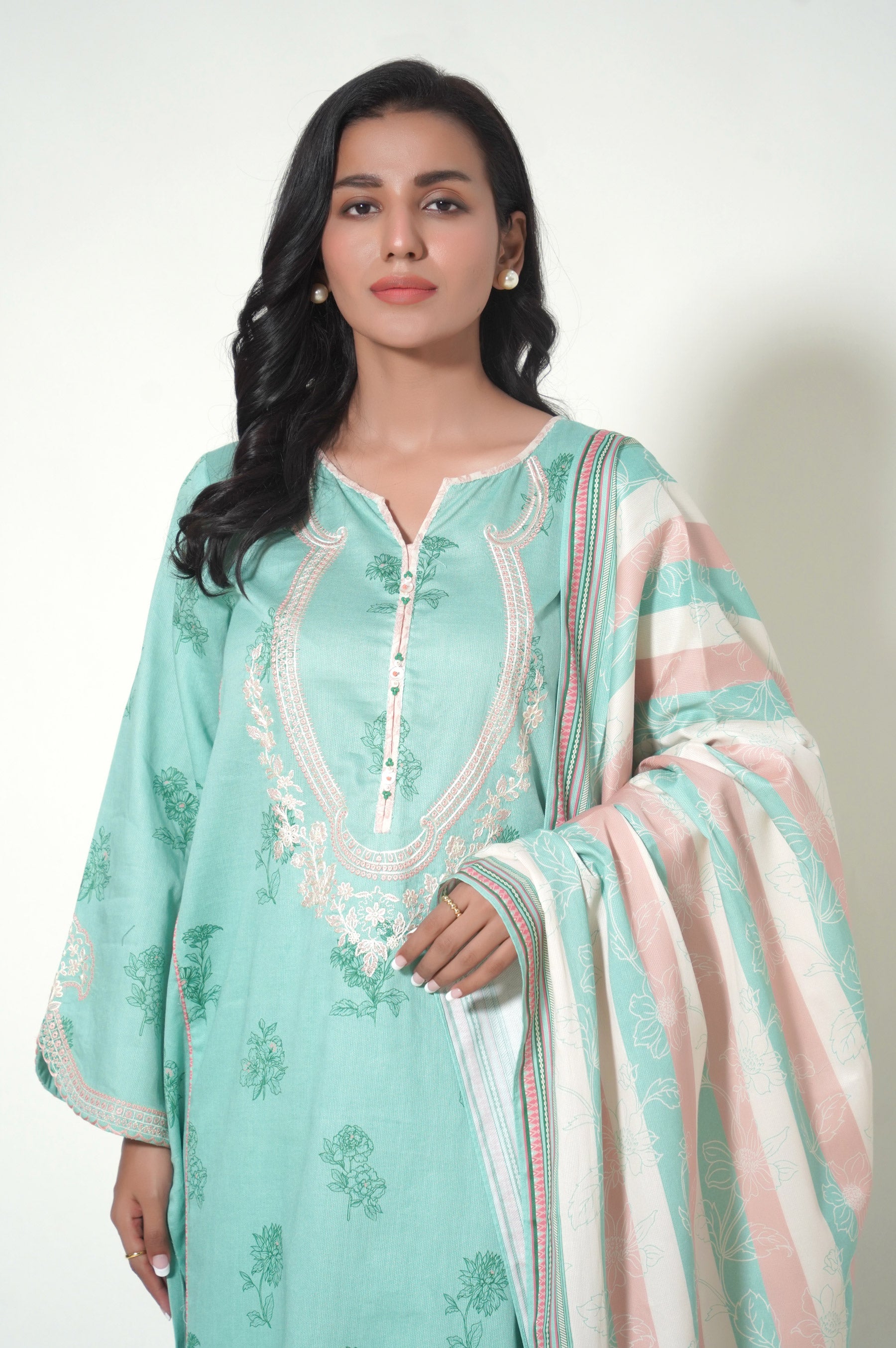 A pallet of mint with soft pink and mesmerising embellishments explaining its allure through it's modern print concept brings just the right calmness for winter season.