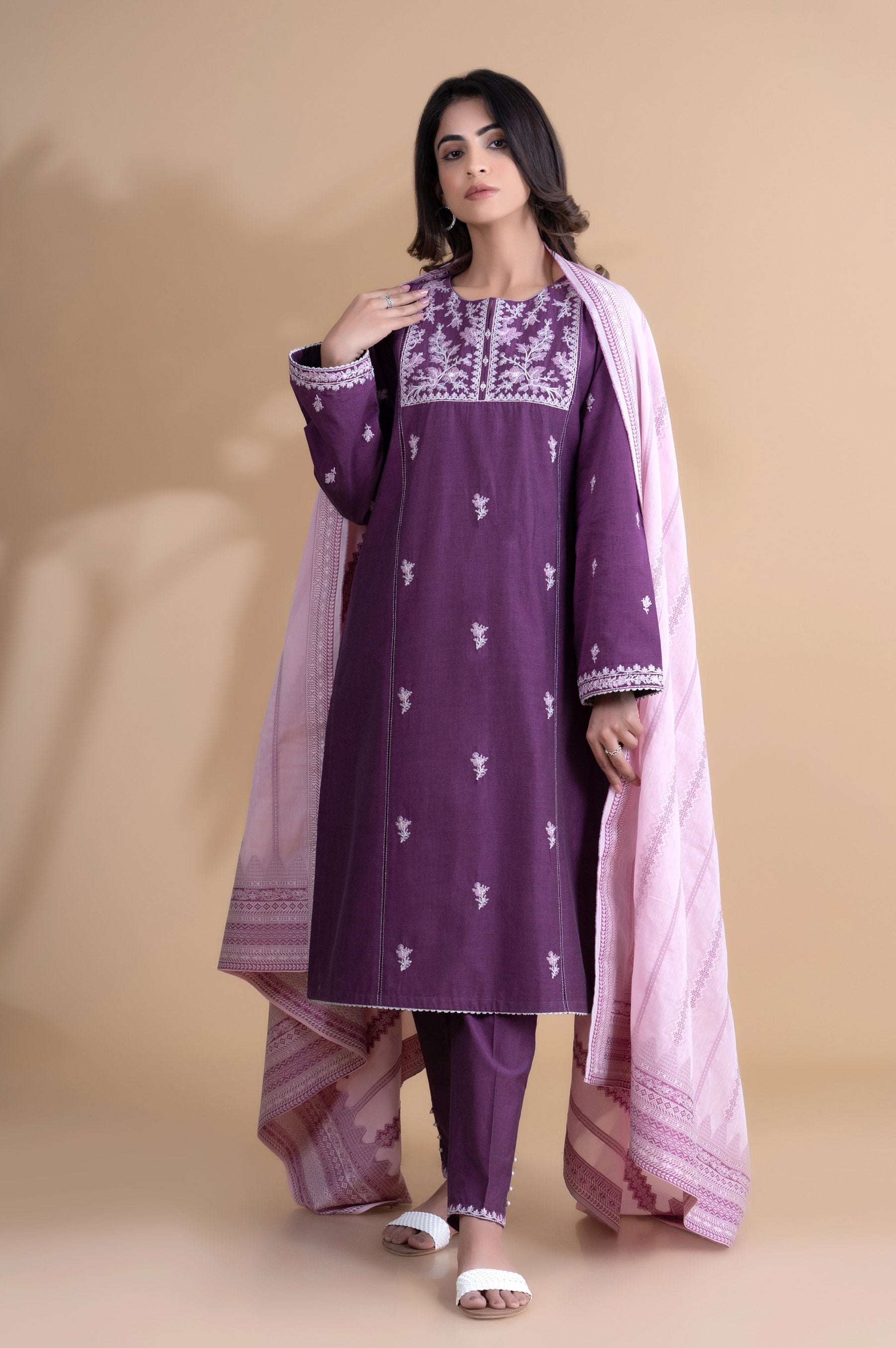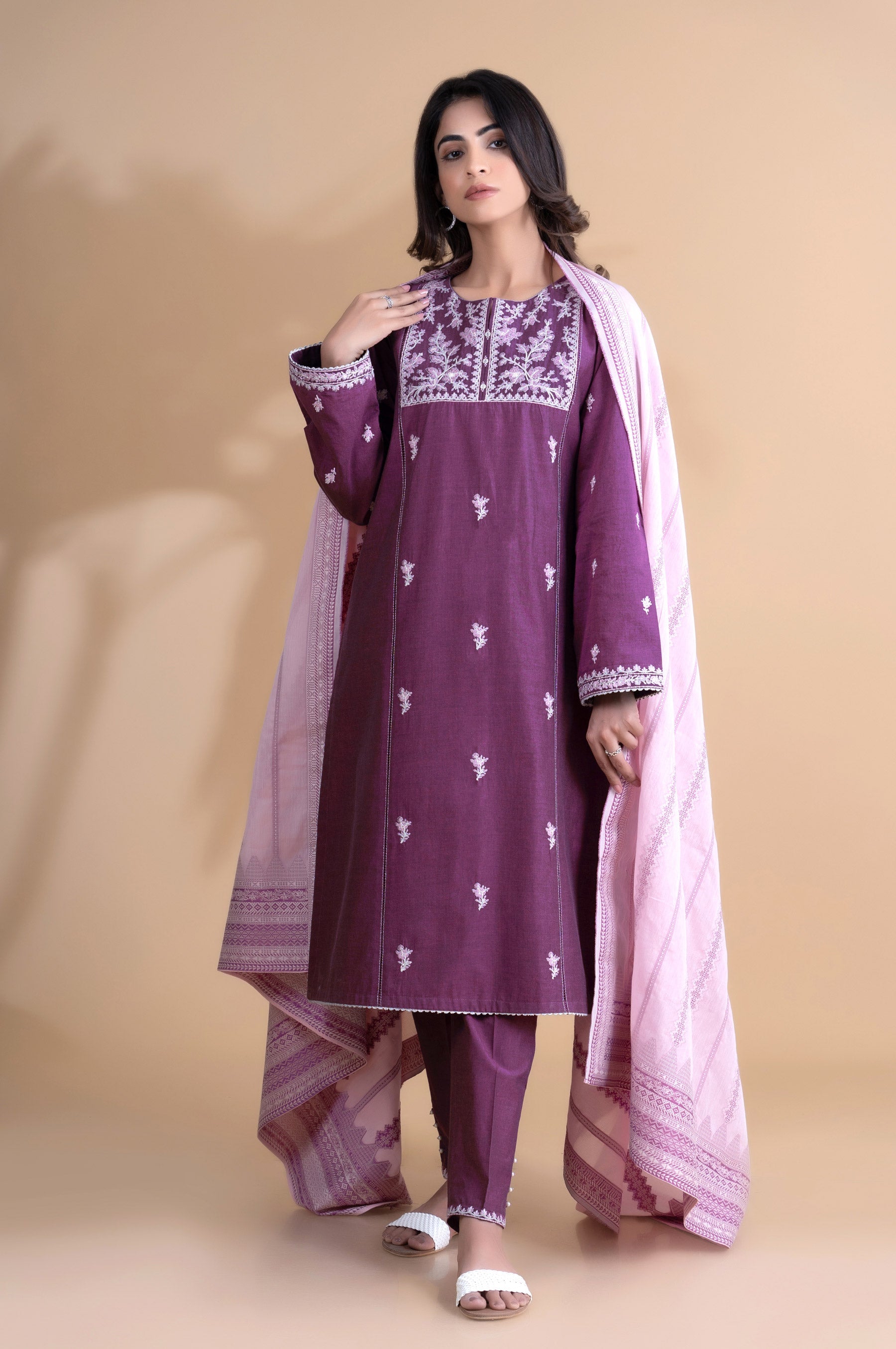 Unstitched 3 Piece Embroidered Yarn Dyed Jacquard Suit