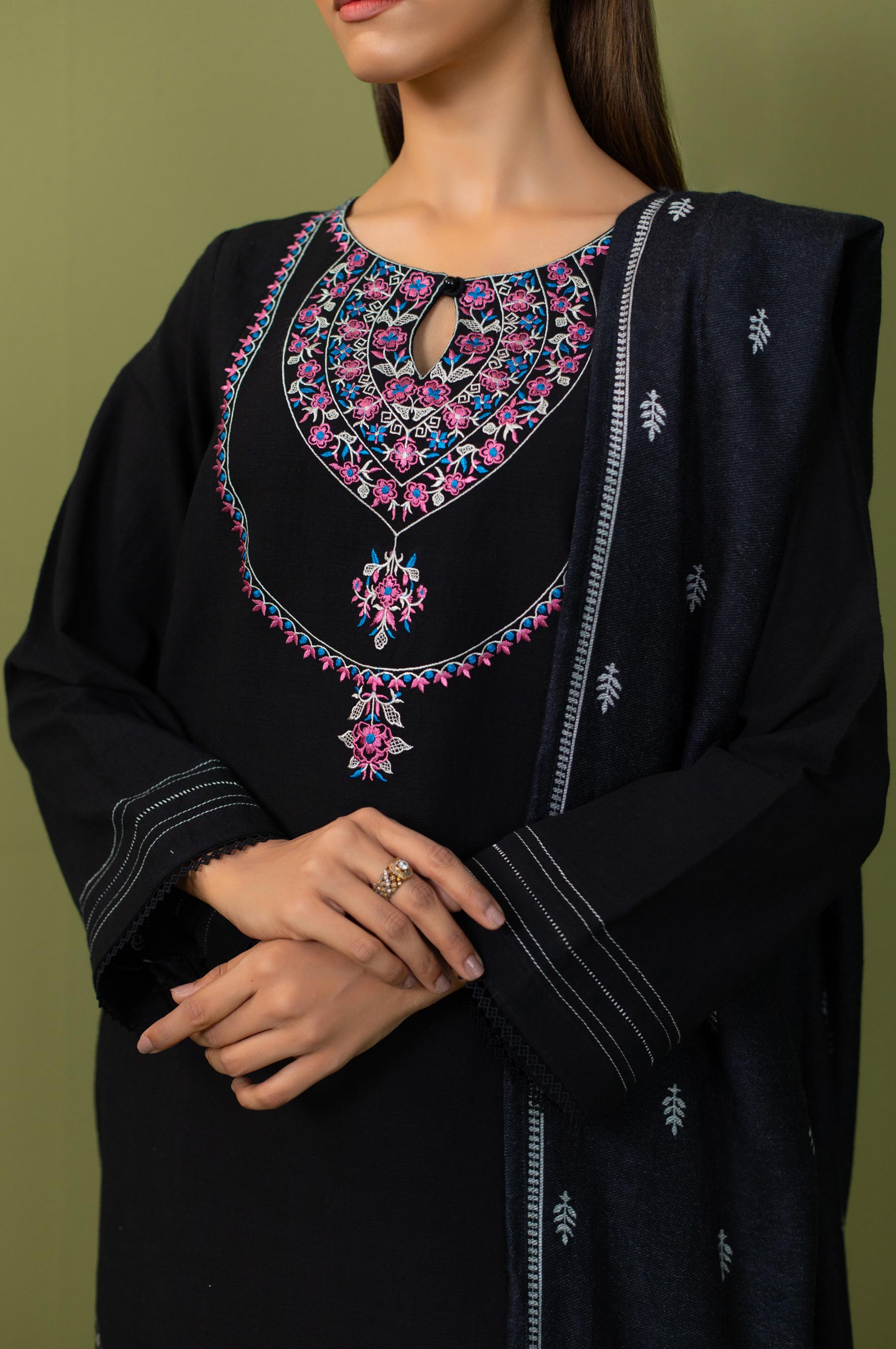 Unstitched 3 Piece Embroidered Khaddar Suit