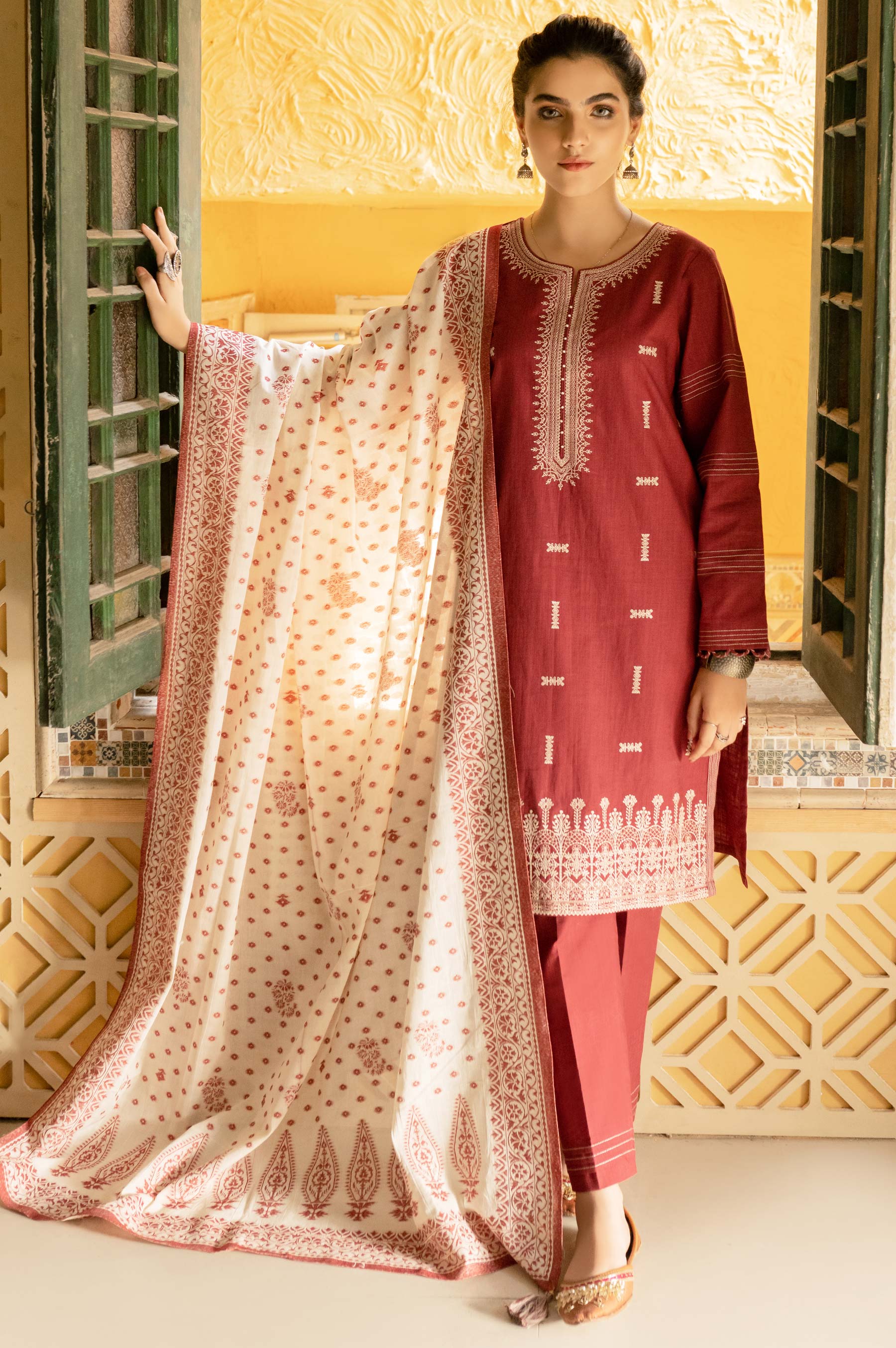 2.5 Meters Dyed Khaddar Shirt with Embroidered Front, 2.5 Meters Jacquard Dupatta, 2 Meters Dyed Khaddar Bottom