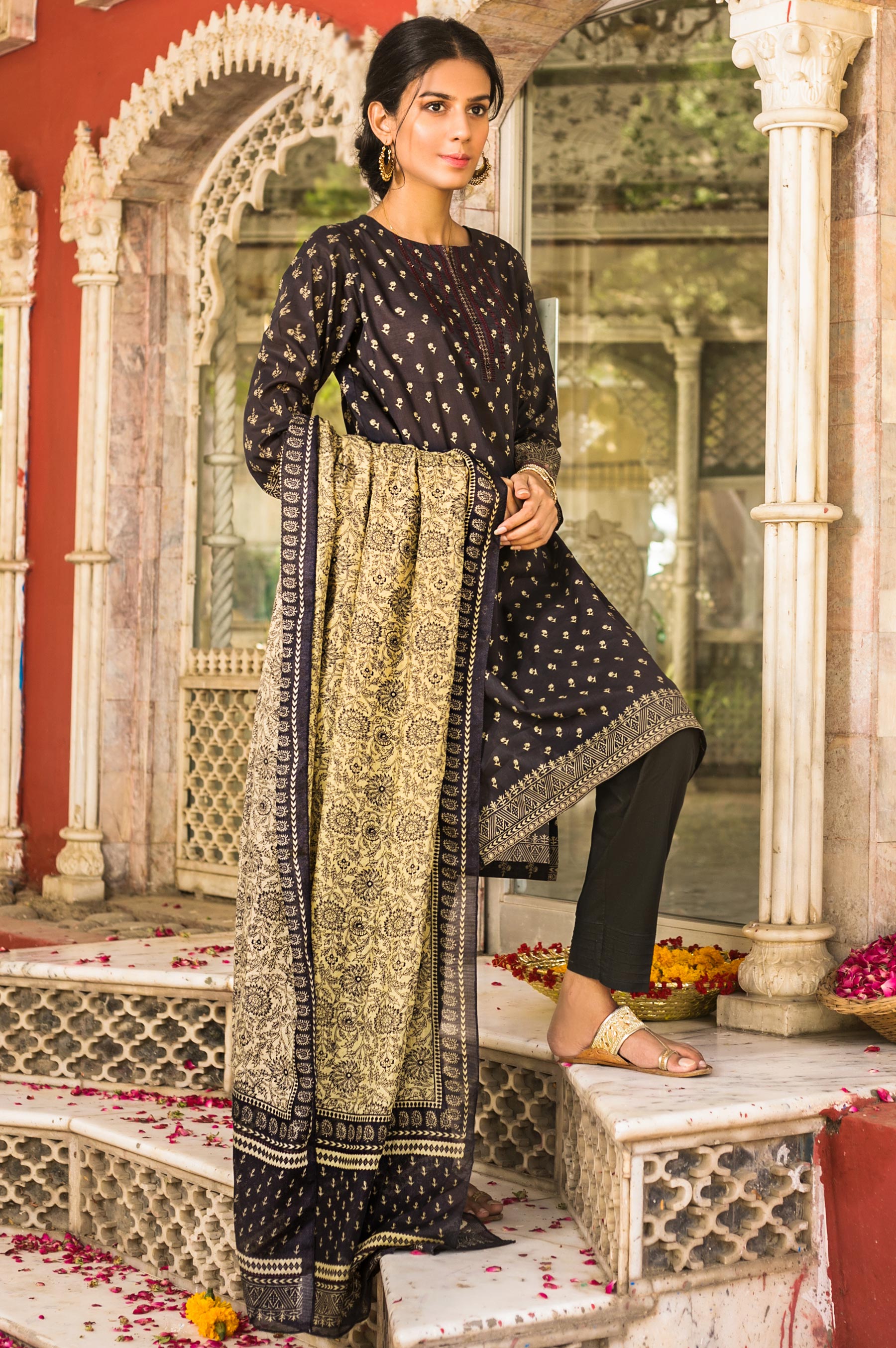 2.5 Meters Printed Lawn Shirt with Embroidered Neckline, 2 Meters Dyed Cambric Bottom, 2.5 Meters Printed Cotton Net Dupatta