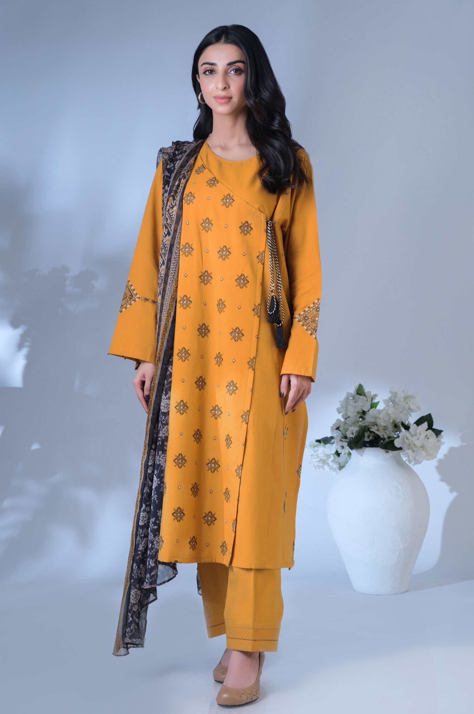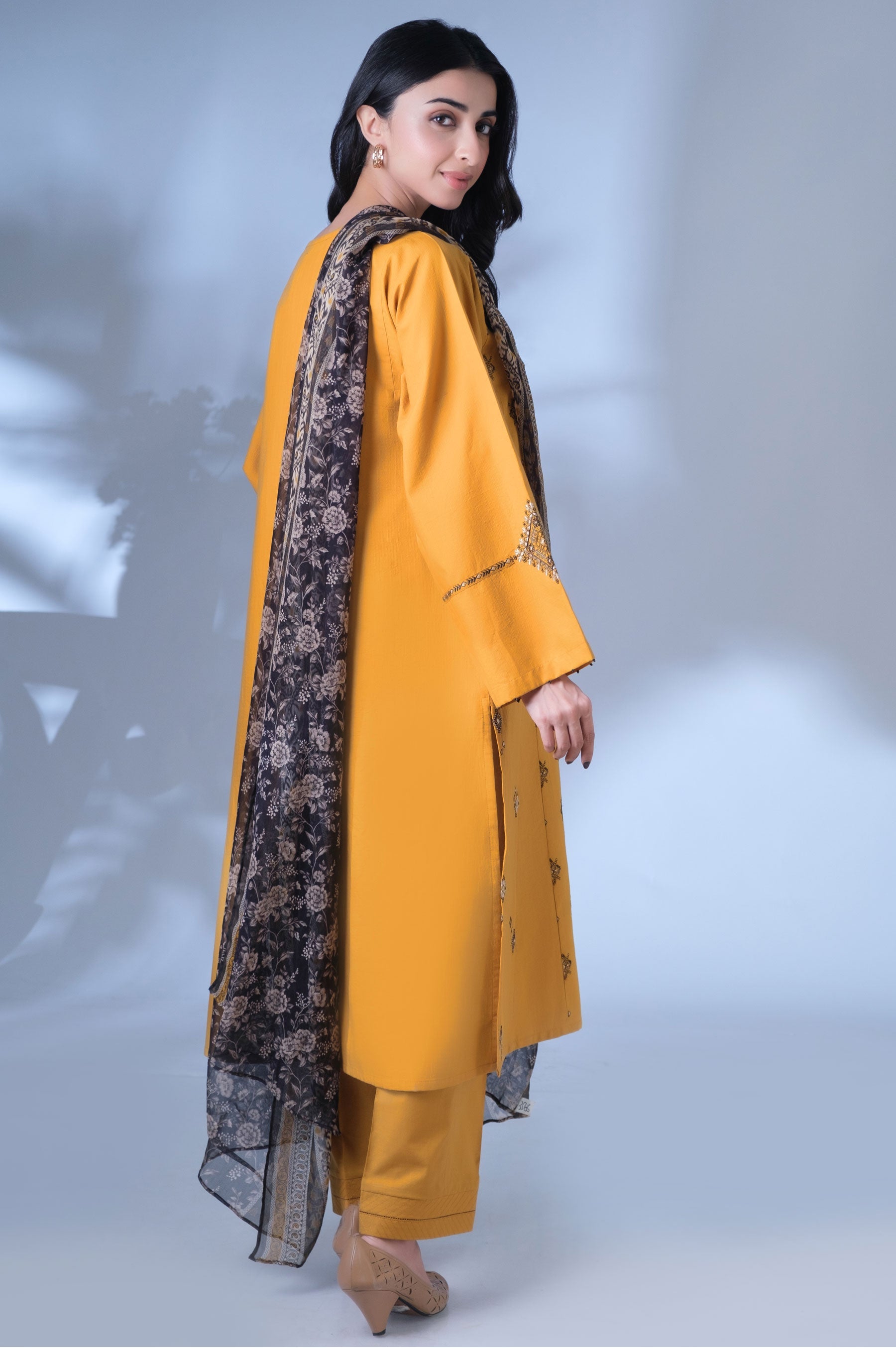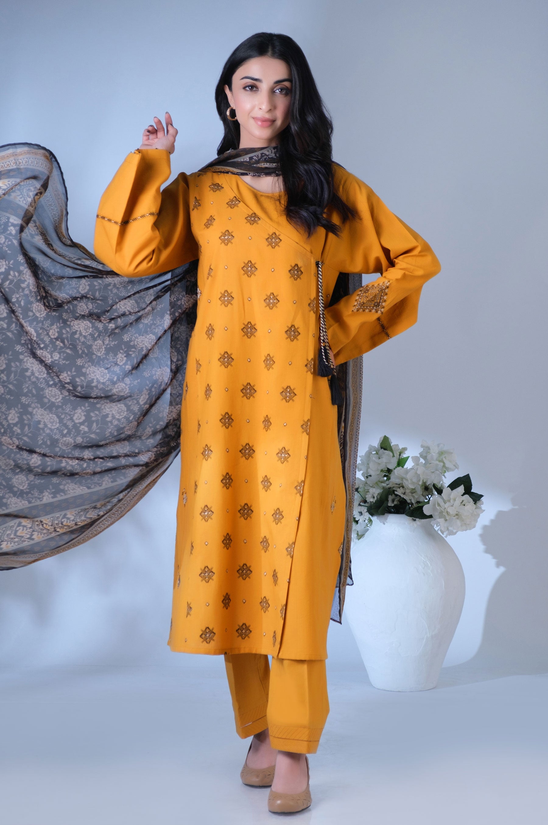 Unstitched 3 Piece Embroidered Textured Slub Suit
