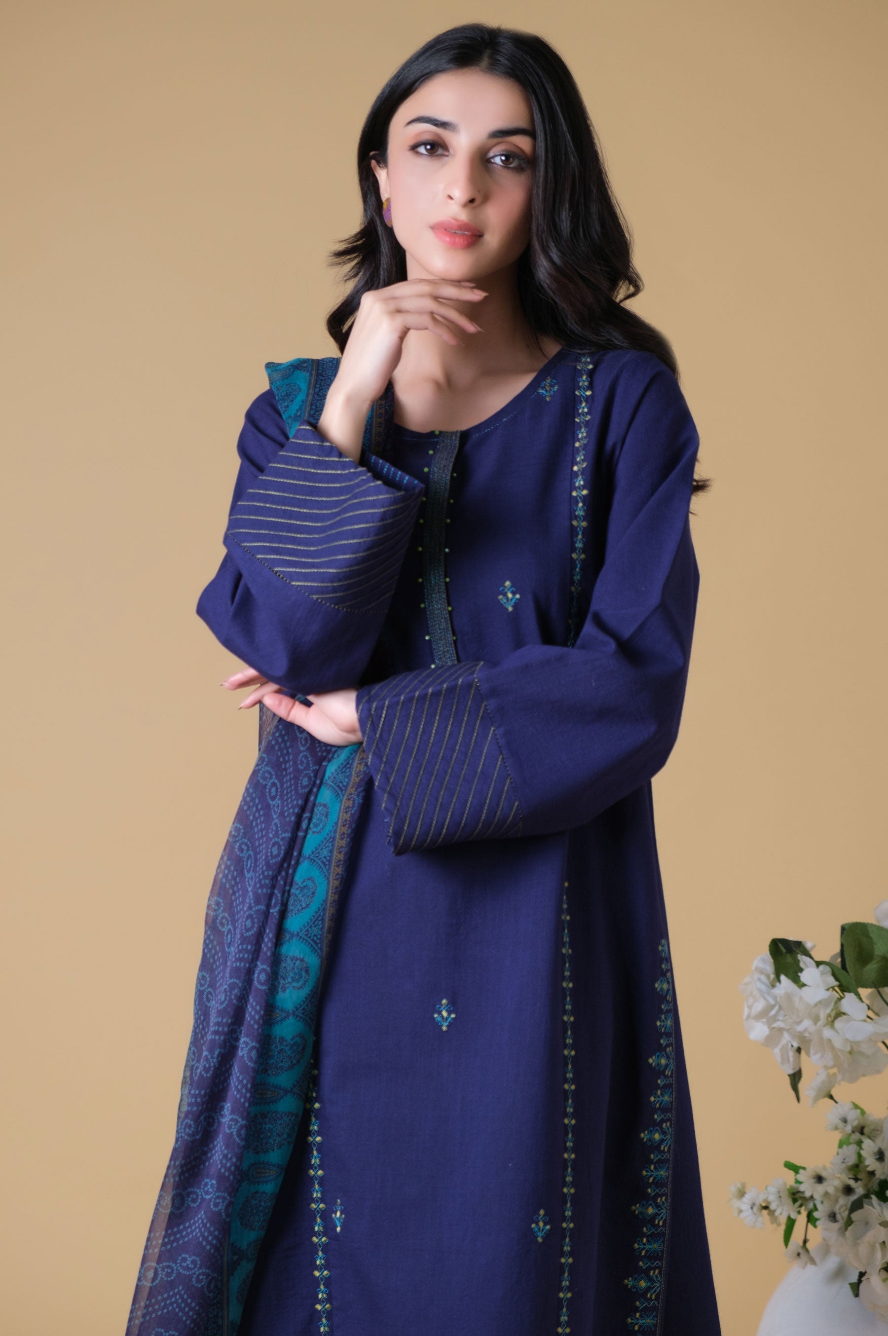 Unstitched 3 Piece Embroidered Textured Slub Suit