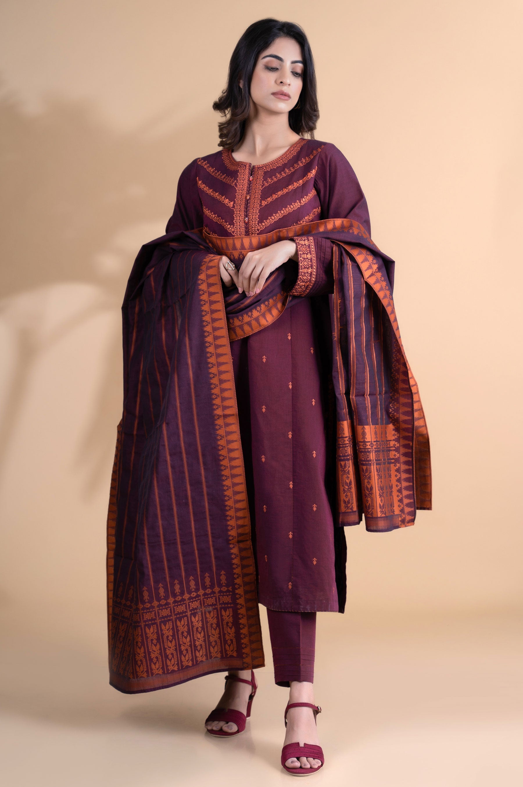 Unstitched 3 Piece Embroidered Yarn Dyed Jacquard Suit