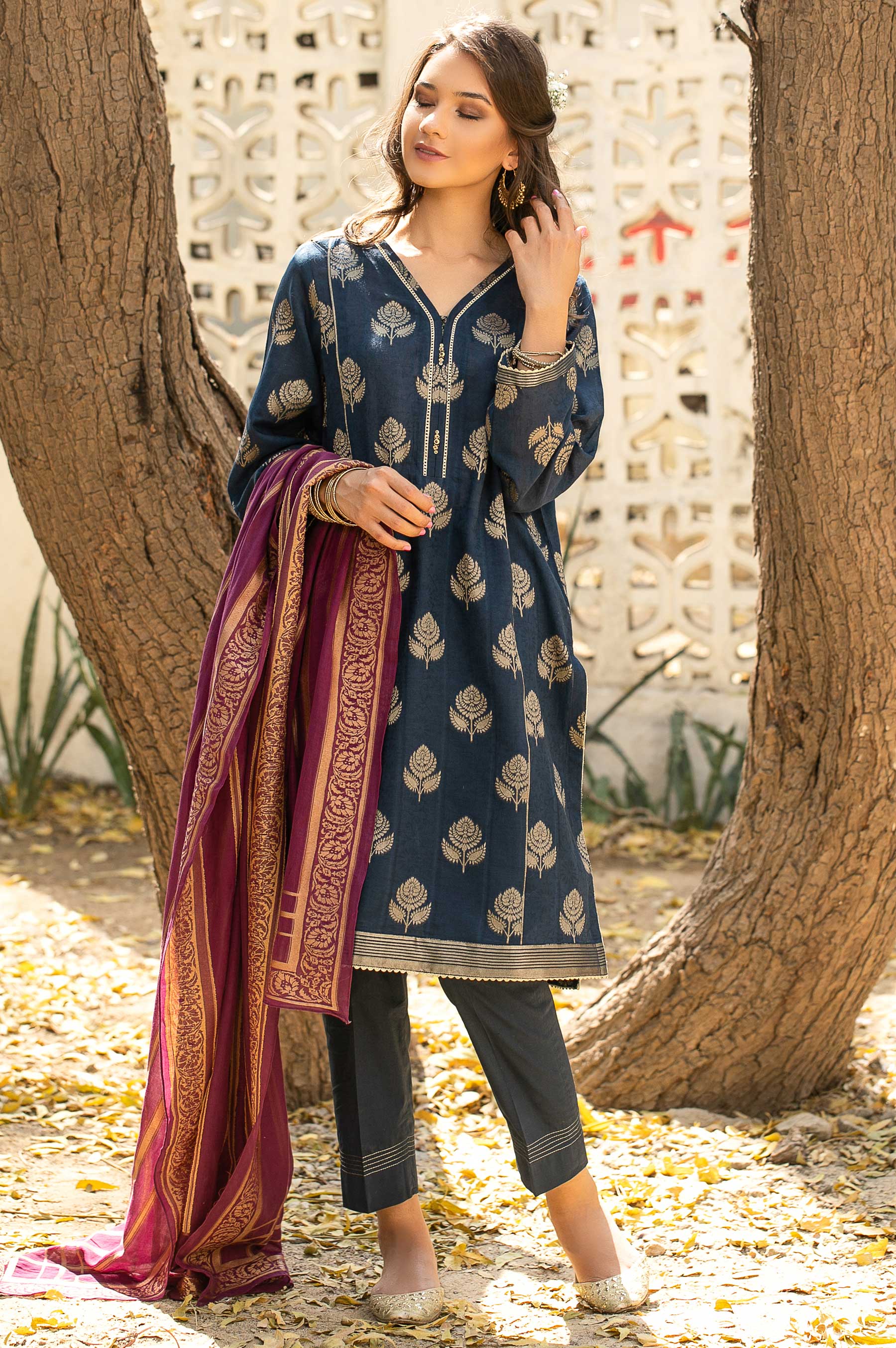 Ethnic jacquard with contrasting dupatta to provide stylish appearance.