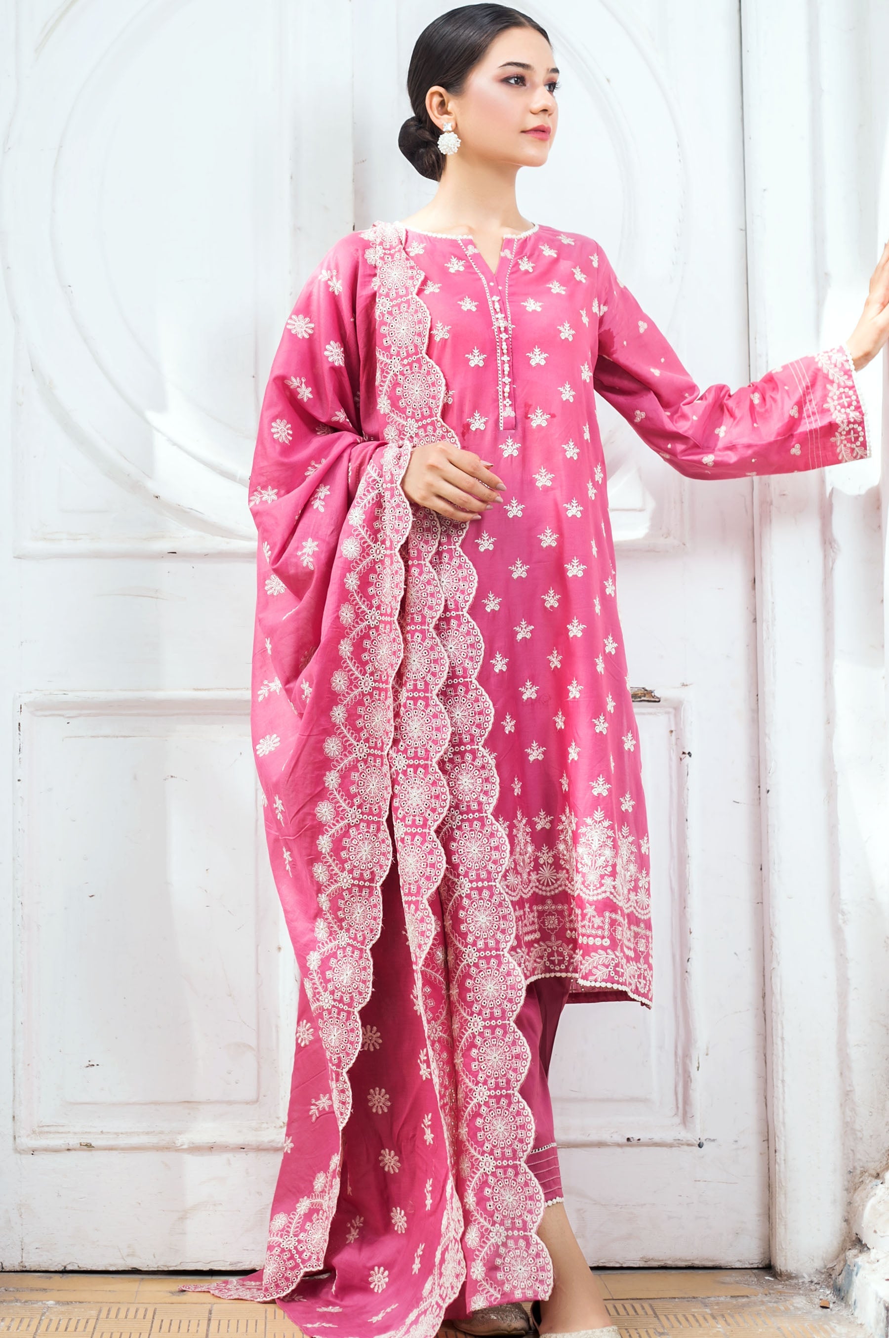 2.75 Yards Dyed Lawn Chikankari Shirt, 2.25 Yards Dyed Cambric Bottom, 2.5 Yards Dyed Lawn Chikankari Dupatta