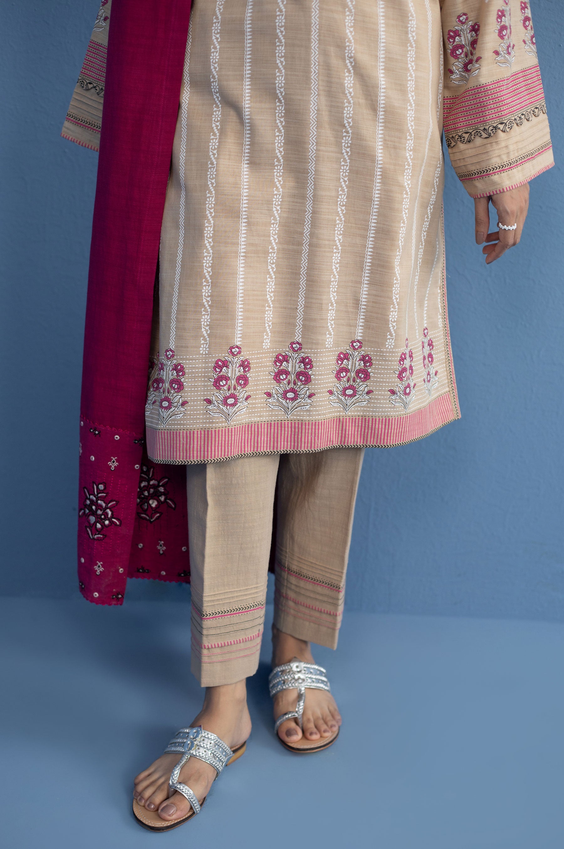 Unstitched 3 Piece Paste Printed Khaddar Suit