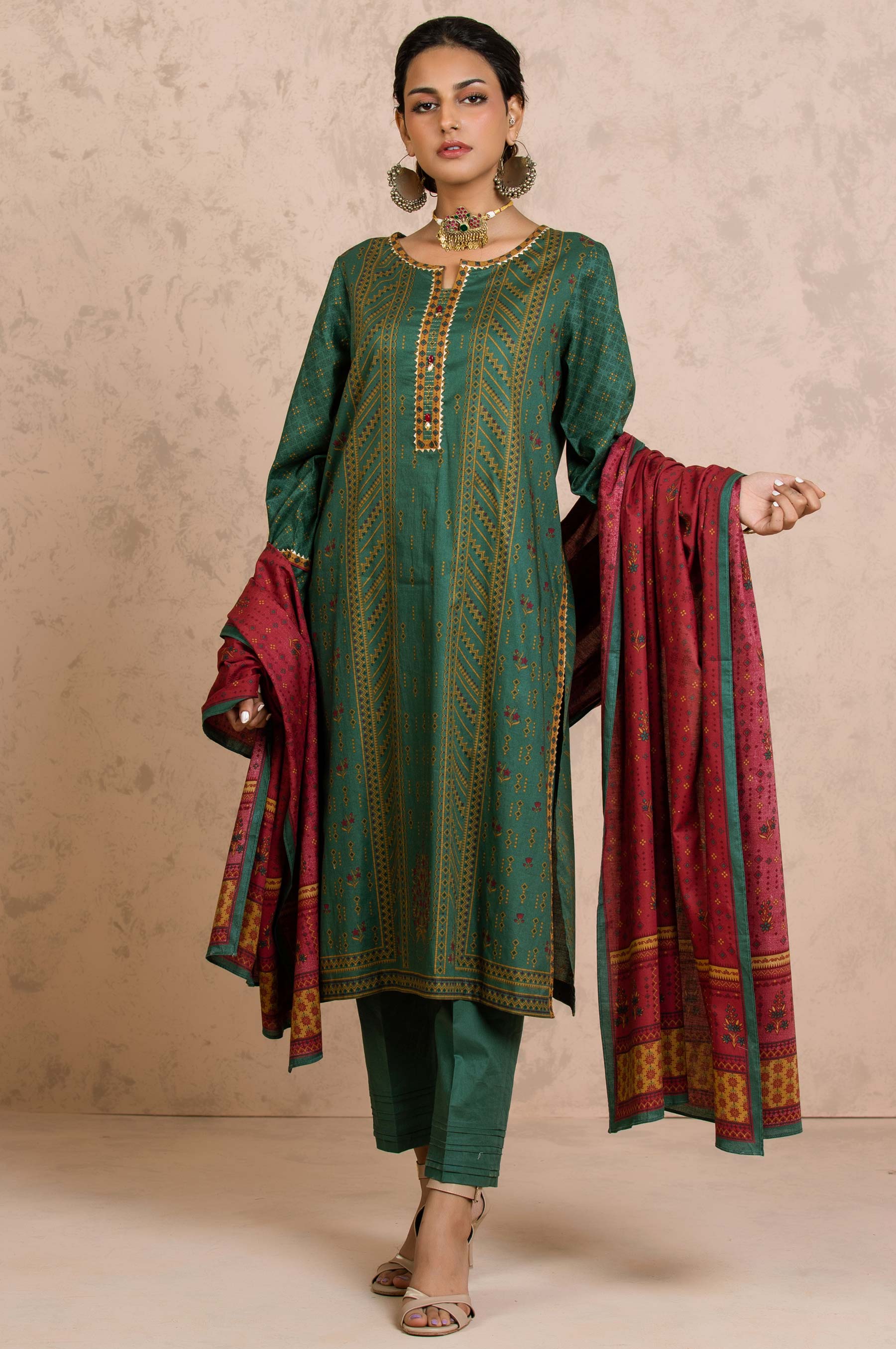 2.5 Meters Printed Cambric Shirt, 2.5 Meters Printed Cambric Dupatta, 2 Meters Dyed Cambric Bottom