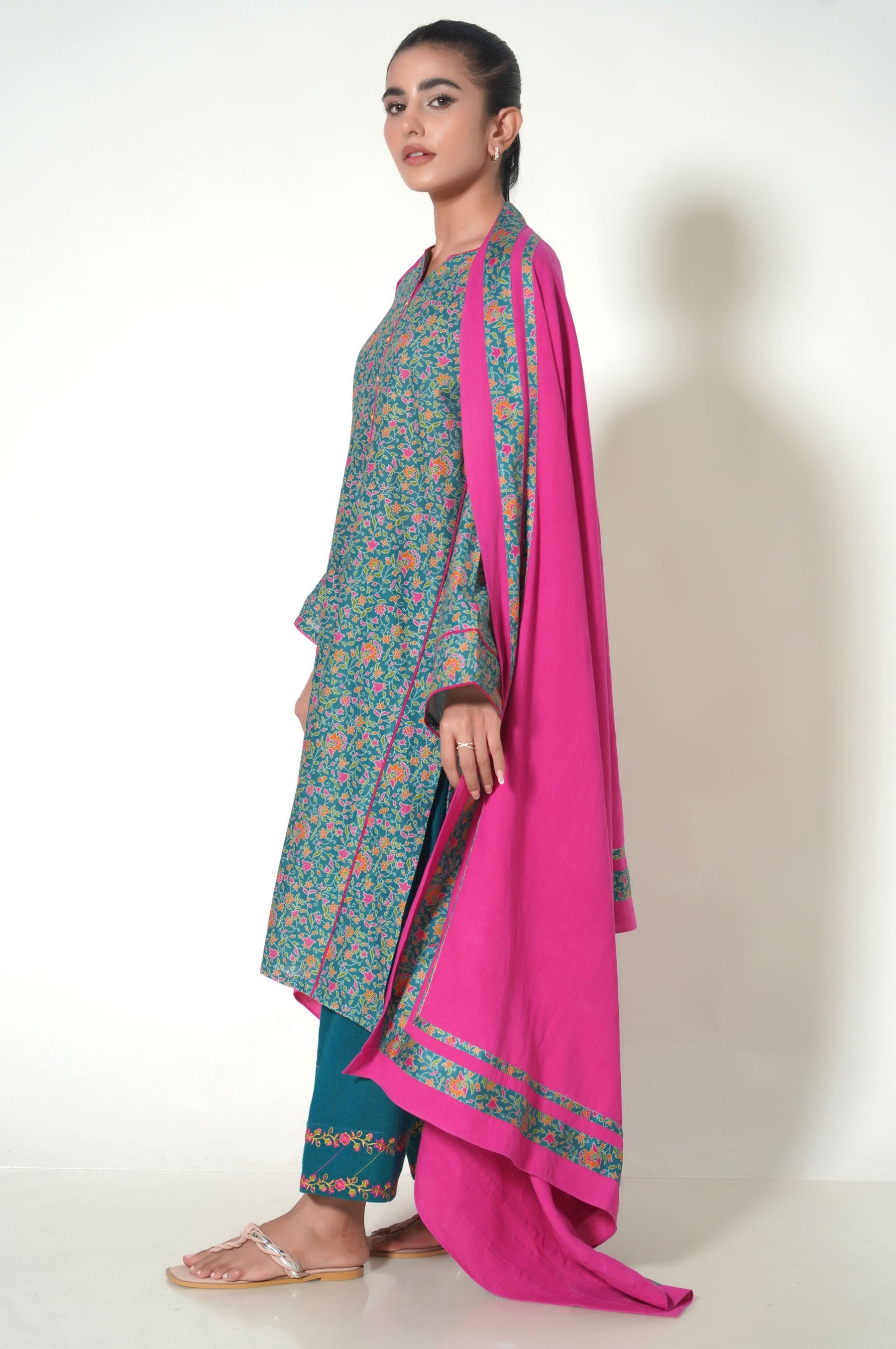 This beautifully crafted ensemble will make a timeless addition to your wardrobe. It comes with a continuous floral kaantha embroidery themed shirt with an elegently embroidered shalwar lastly paired with a contrasting dupatta, ideal for a formal/traditional event